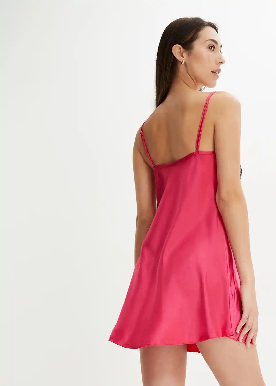 Čudovite, nežne tkanine poskrbijo za prijeten občutek na koži in za čudovit videz. To čarobno negliže iz sijoče satenaste tkanine se nežno prilega koži. Zgornji del je izdelan iz tanke čipke z dizajnom vrtnic. Zahvaljujoč individualno nastavljivim naramnicam negliže omogoča optimalno prileganje. Spodnji del pa navdušuje z lahkotnim padajočim krojem.