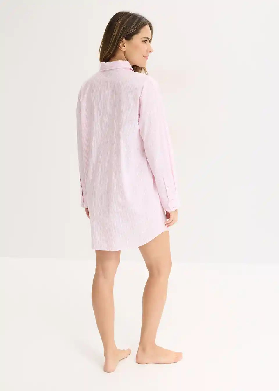 Tkana ohlapna spalna srajca iz čistega bombaža