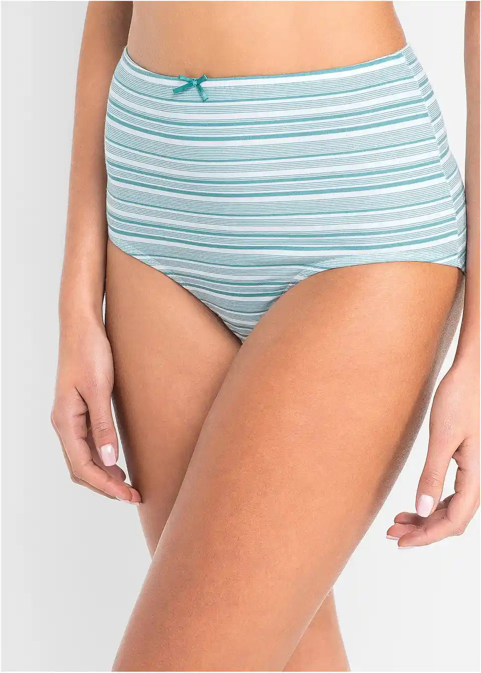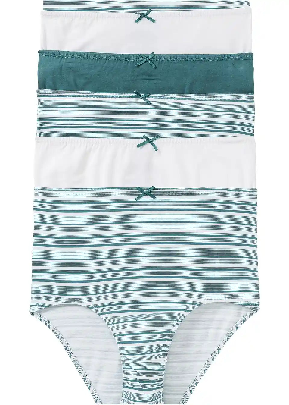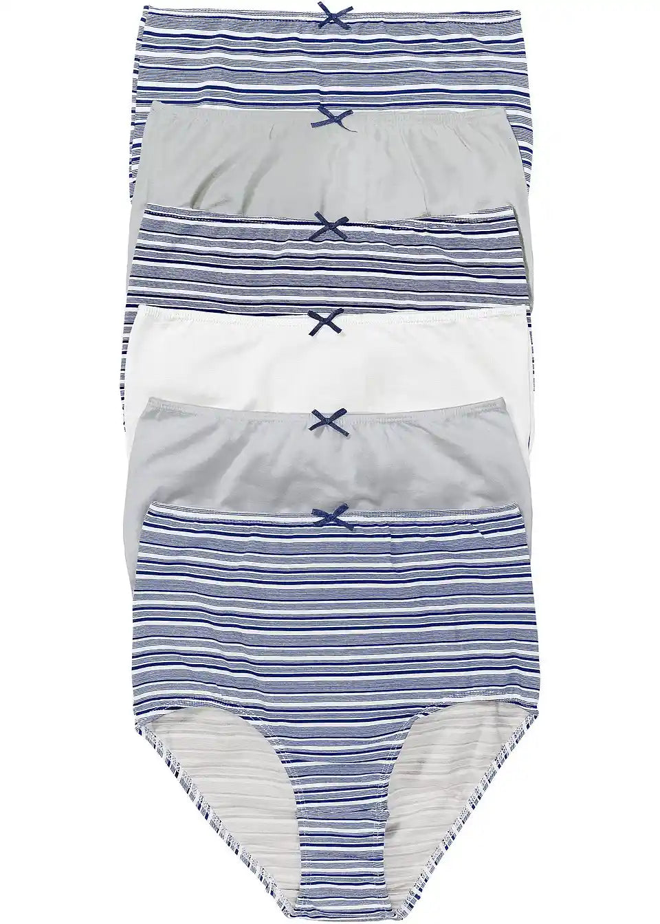 Te hlačke so klasičnega kroja v modnih barvnih kombinacijah. Z udobnim krojem, ki sega do pasu, ponujajo hlačke z visokim pasom znamke bpc selection izjemno udobje pri nošenju. Diskretni vzorec črt in majhna satenasta pentljica poskrbita za privlačen dizajn. Mednožni del je iz bombaža. Hlačke so na voljo v različnih ugodnih paketih po šest kosov. Te brezčasne hlačke so popolna osnova urejene garderobe.