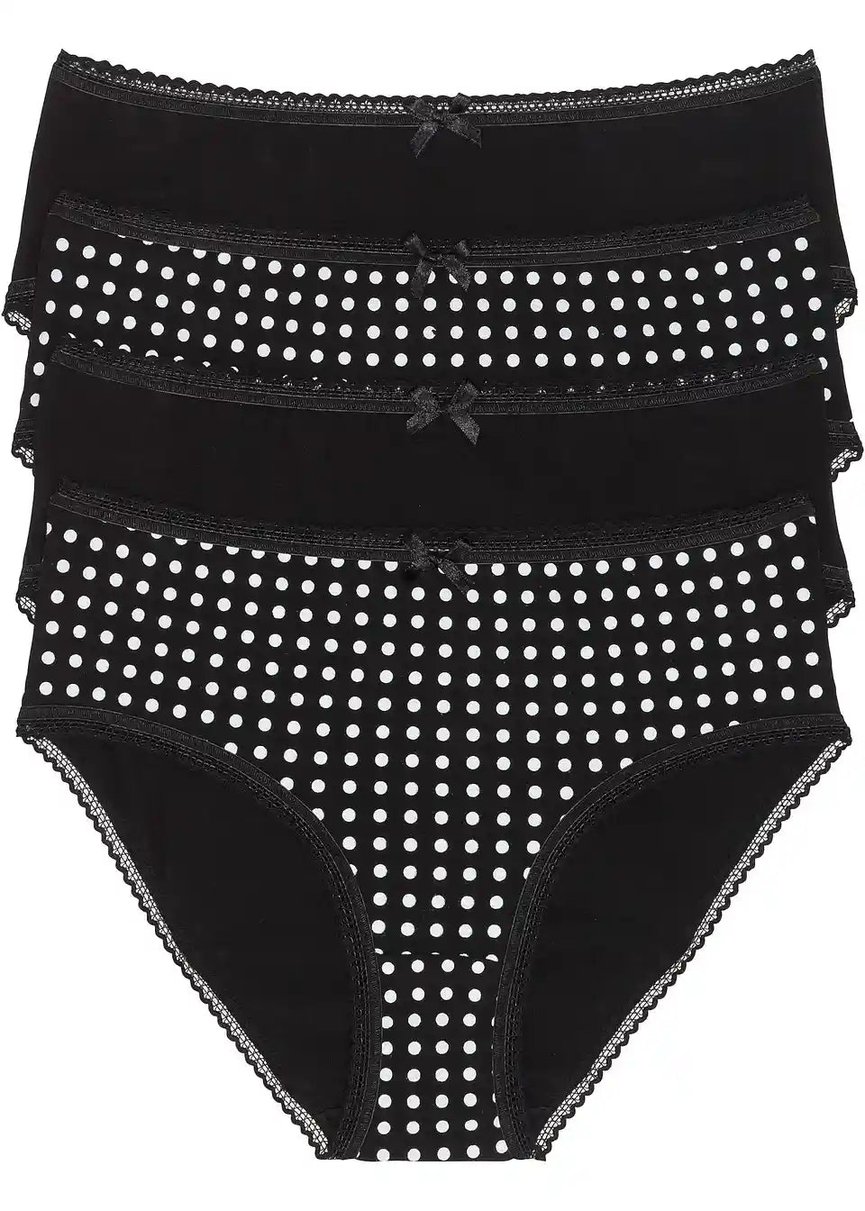Večkrat udobno: Štiridelni paket s prijetno mehkimi Maxi hlačkami zagotavlja izjemen občutek nošenja in je hkrati čudovito ženstven. Na sprednji strani pasu dekorativna pentlja dopolnjuje stilno obliko spodnjega perila. Za še večjo privlačnost poskrbijo prilagodljivi robovi v prosojnem čipkastem videzu. Tesno oblikovane hlačke se izkažejo kot idealna izbira, če želite združiti privlačen videz in visok udobje. Podloga je izdelana iz bombaža.