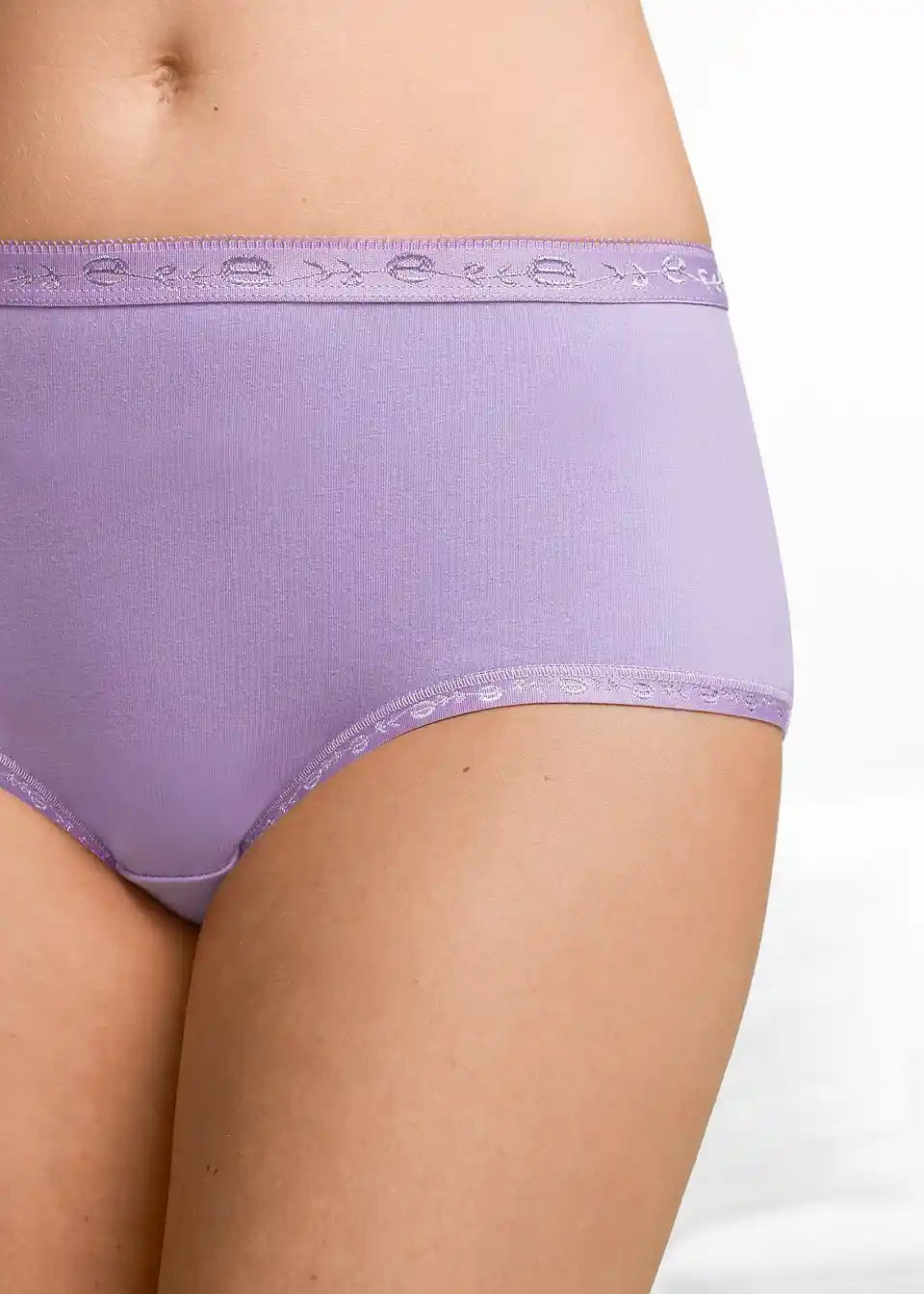 Udobje je pri teh maxihlačkah znamke bpc na prvem mestu. Visok kroj v kombinaciji z mehkim materialom zagotavlja popolno prileganje. Moden videz dopolnjujejo ozki okrasni robovi na zgornjem šivu in zaključkih hlačnic. Mednožni del je izdelan iz bombaža. S praktičnim 5-delnim paketom prejmejo dame privlačne hlačke za vsak dan. Vsak paket vsebuje tri različne barvne odtenke.