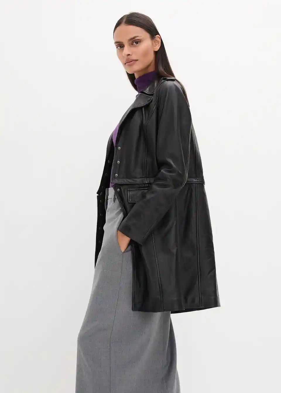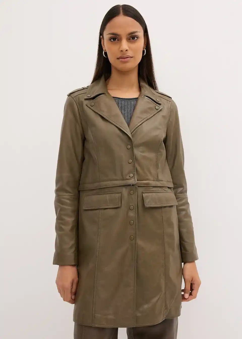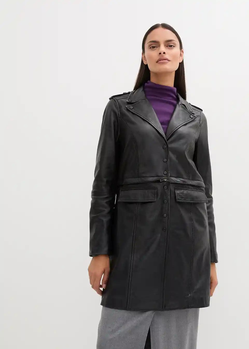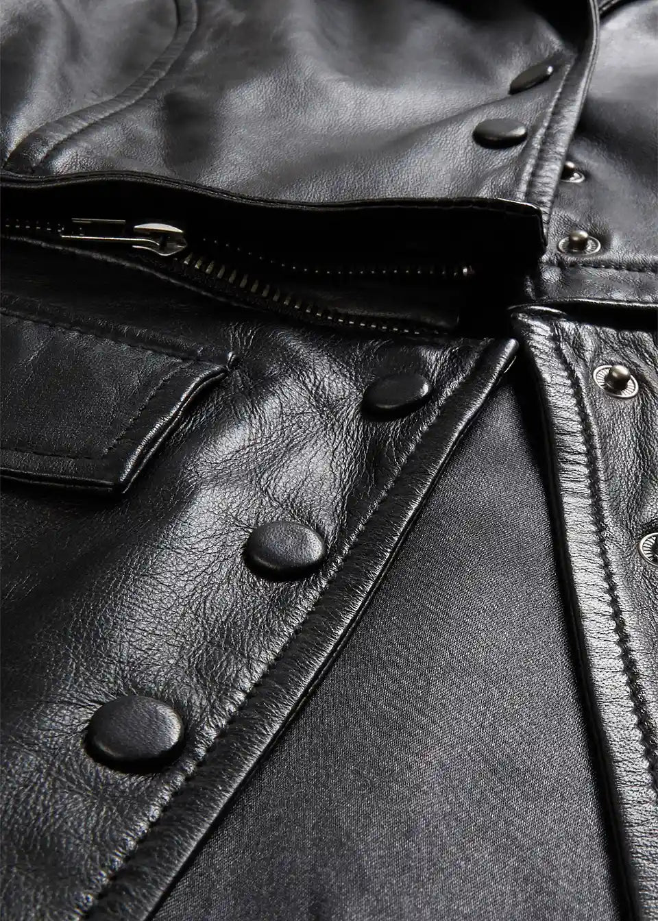 Usnjena jakna z različnimi možnostmi nošenja: v kratki različici kot motoristična jakna ali v dolgi različici kot trenčkot