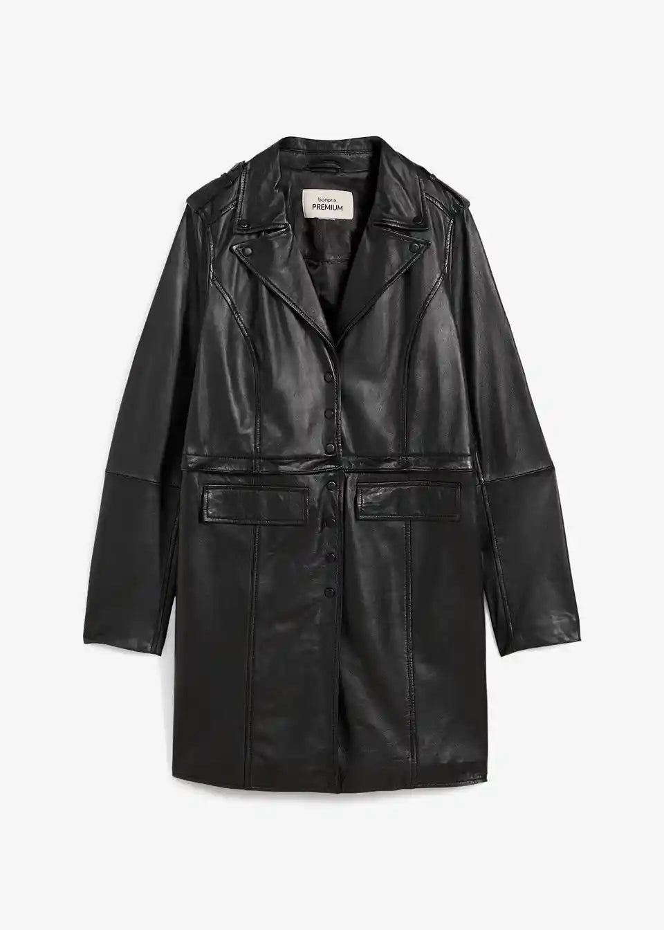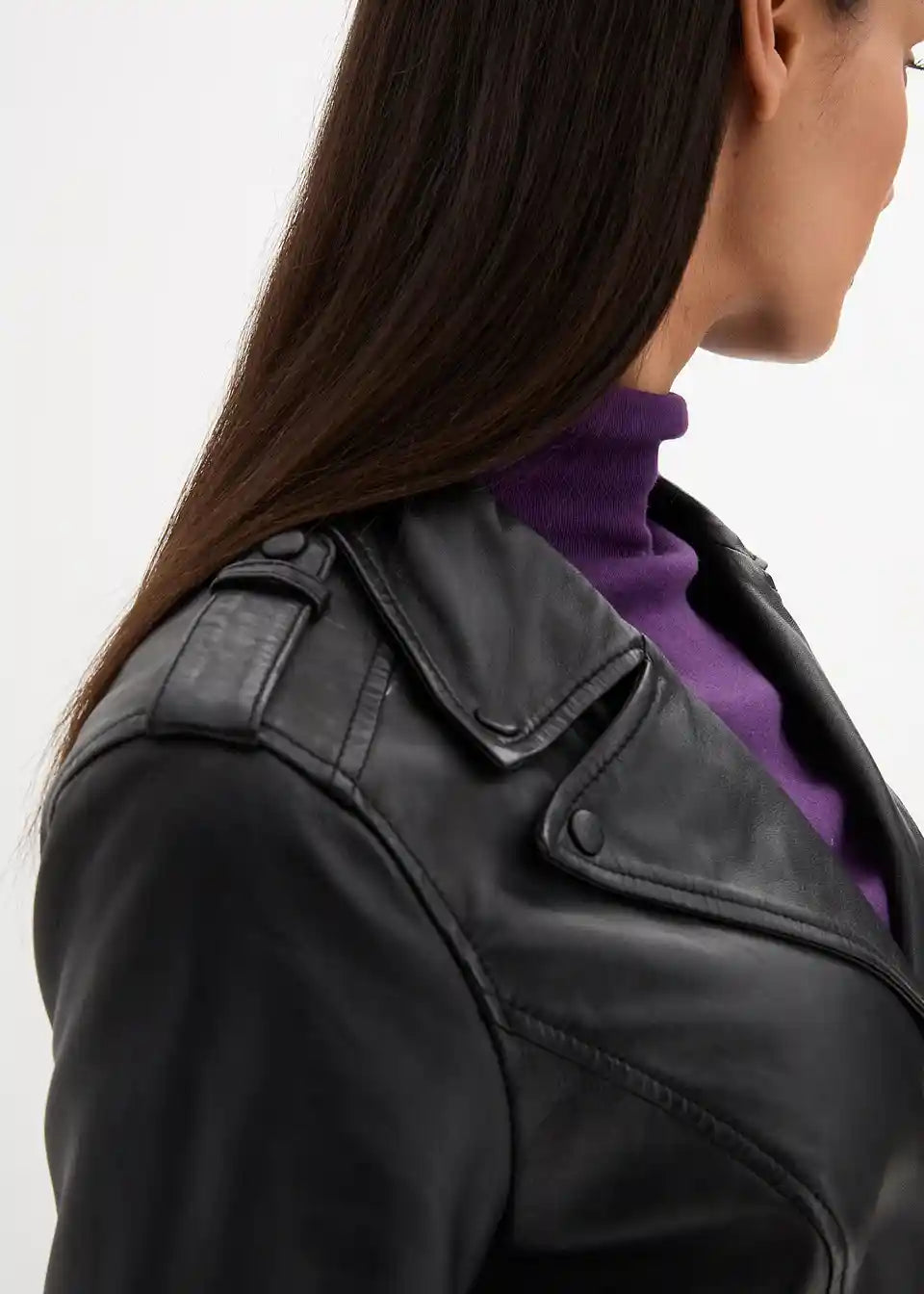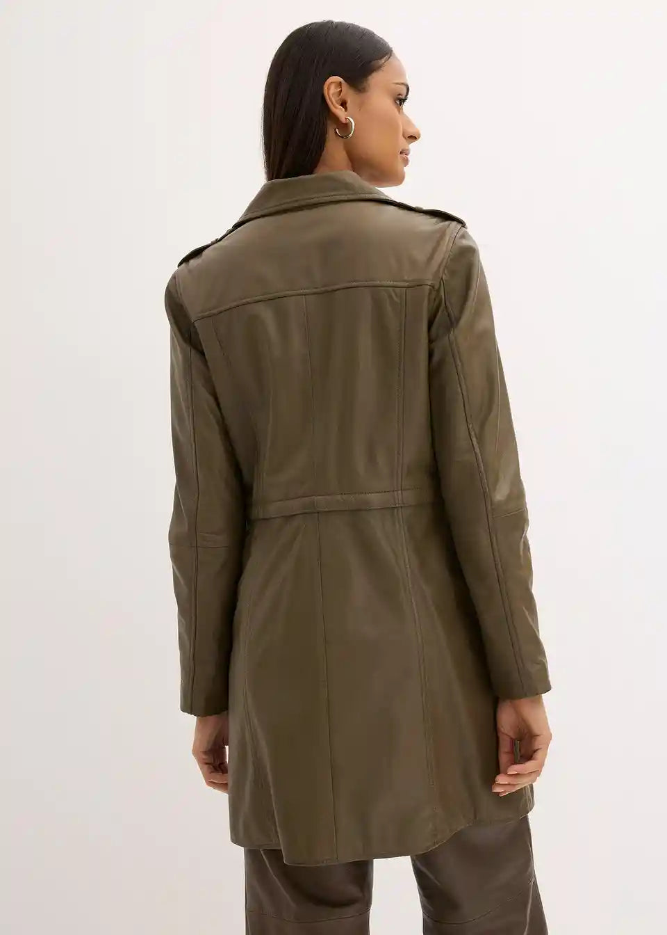 Usnjena jakna z različnimi možnostmi nošenja: v kratki različici kot motoristična jakna ali v dolgi različici kot trenčkot