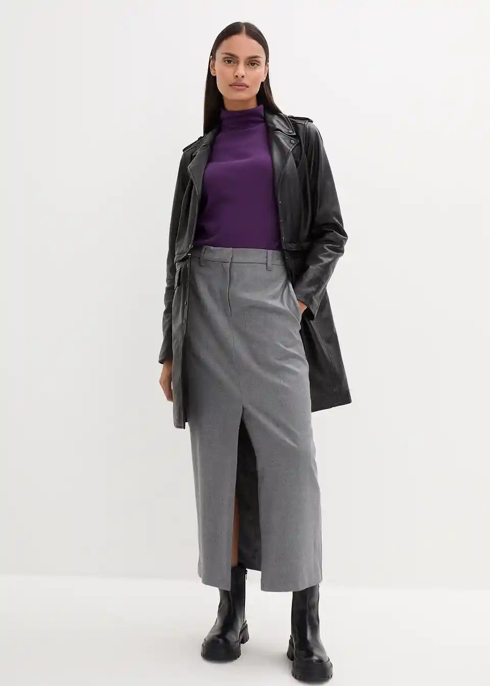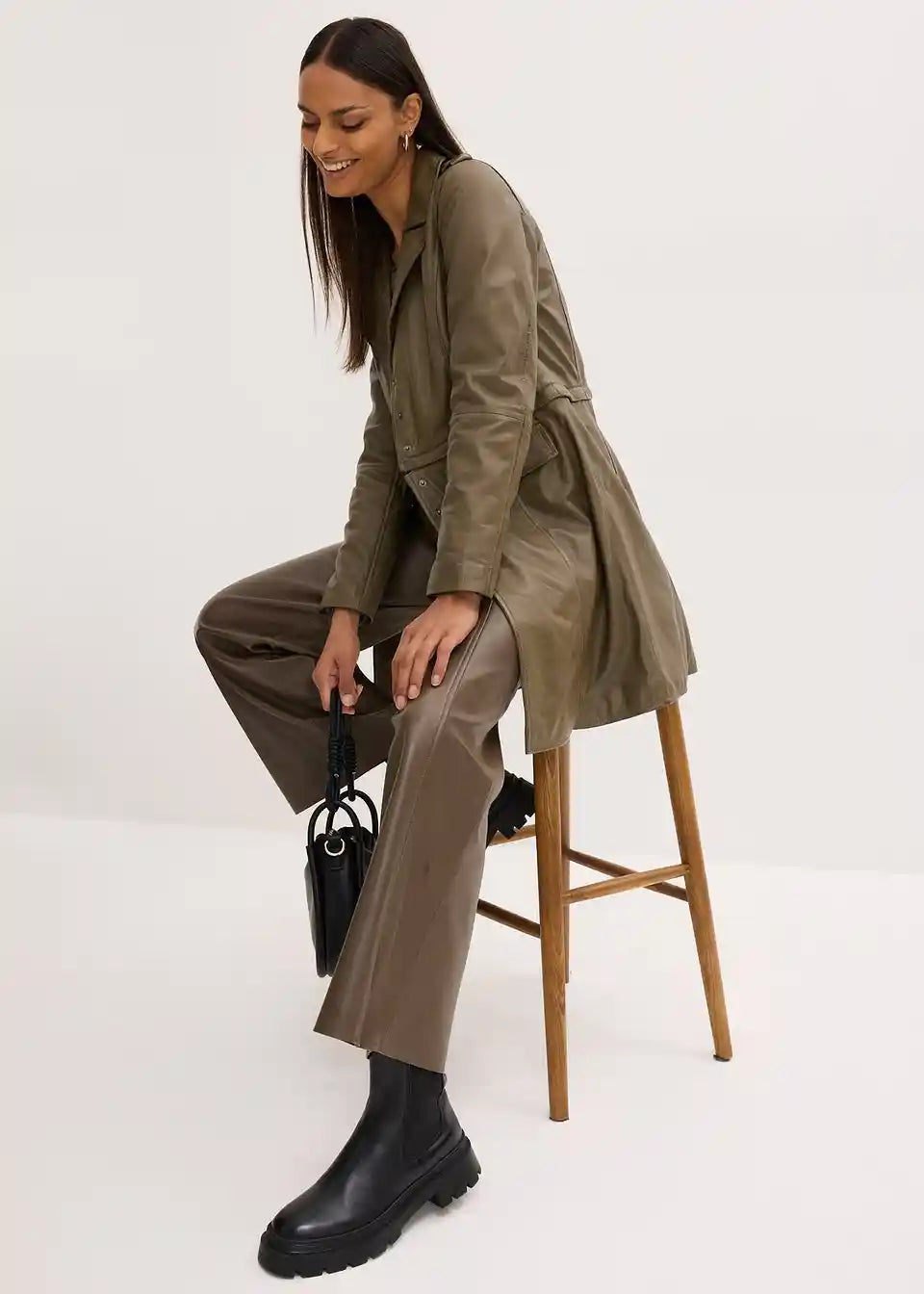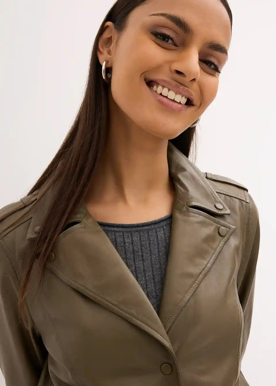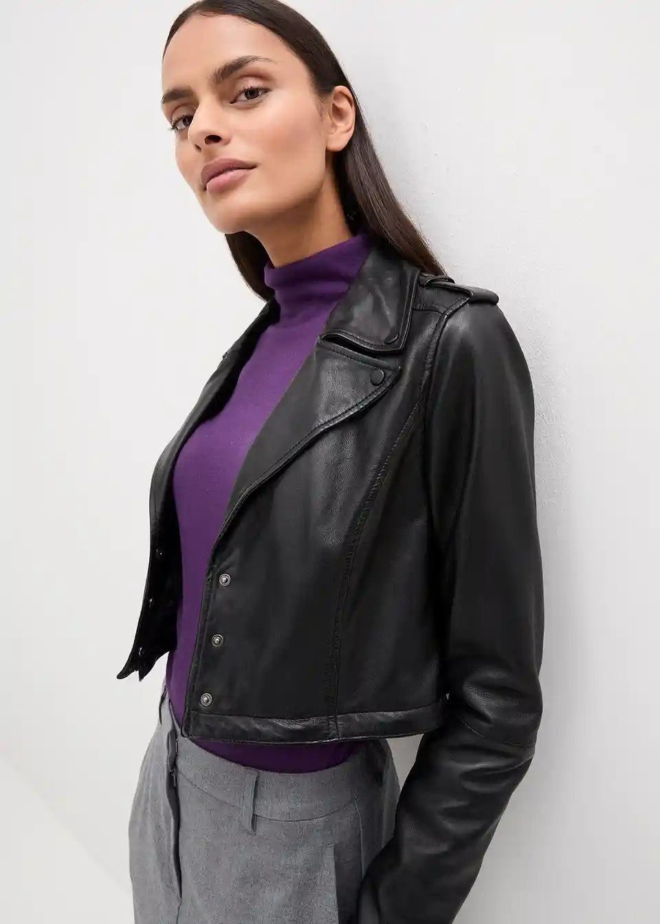 Usnjena jakna z različnimi možnostmi nošenja: v kratki različici kot motoristična jakna ali v dolgi različici kot trenčkot