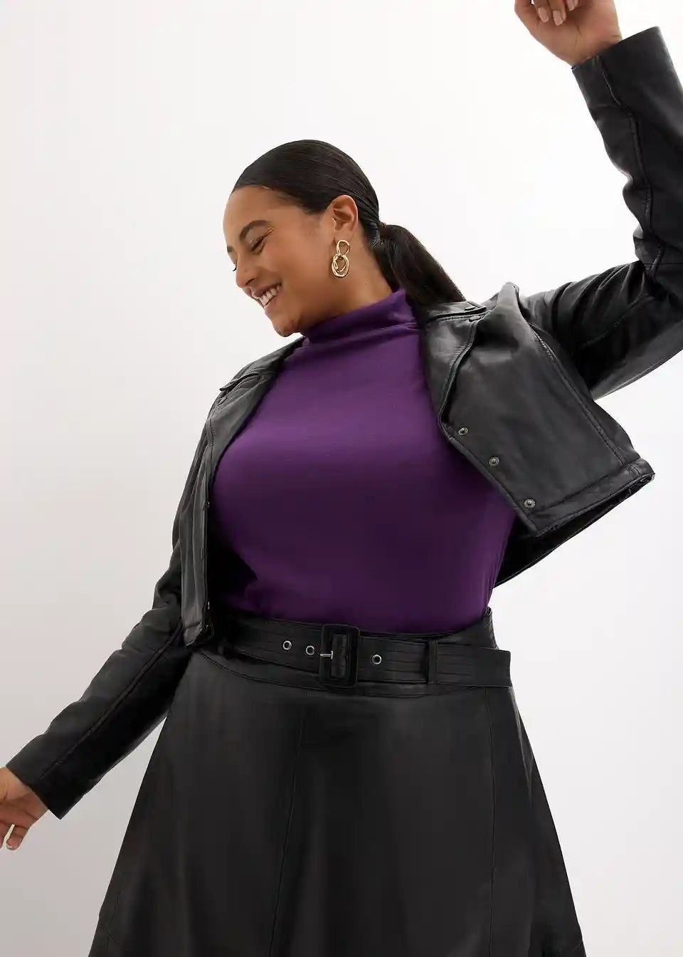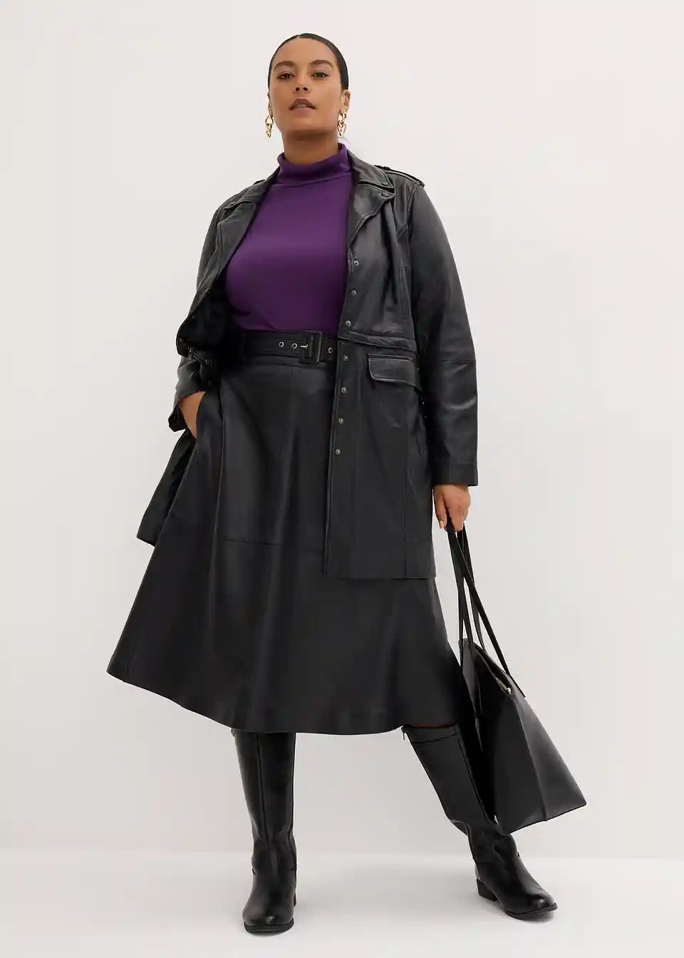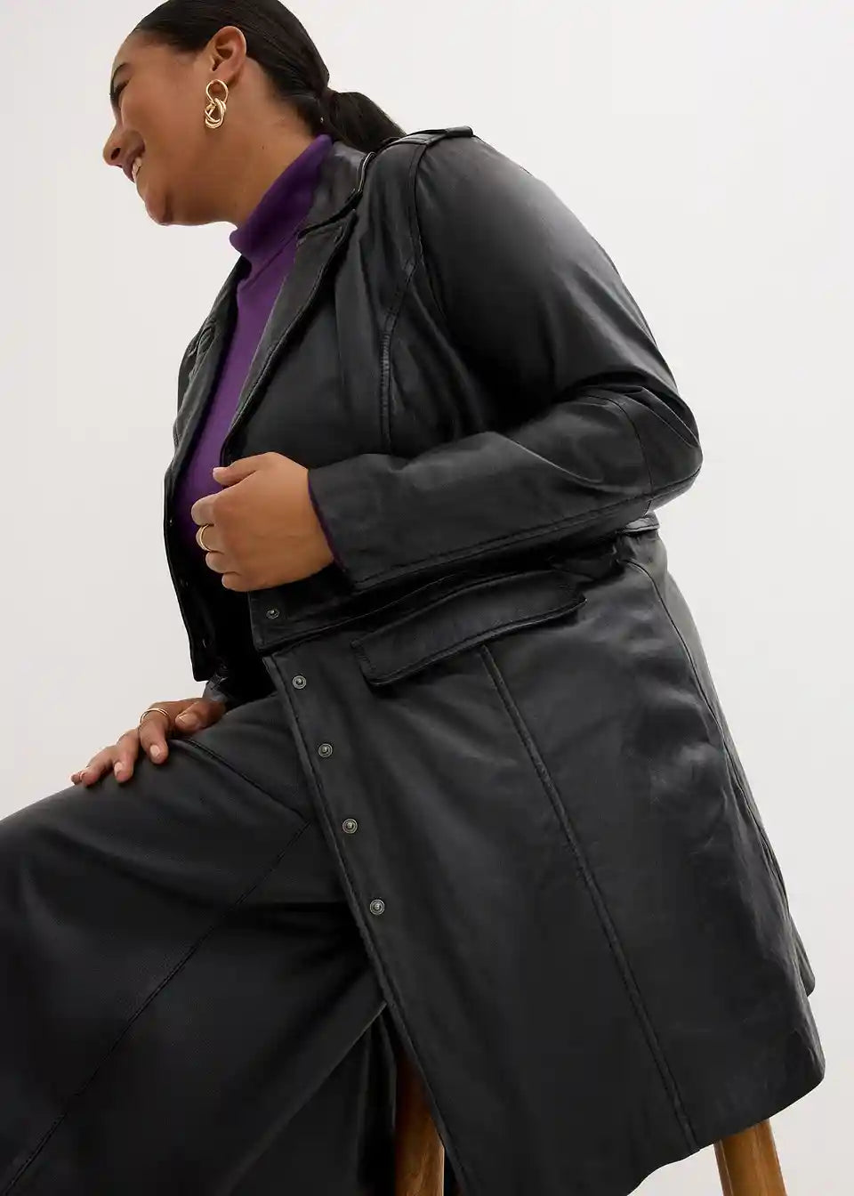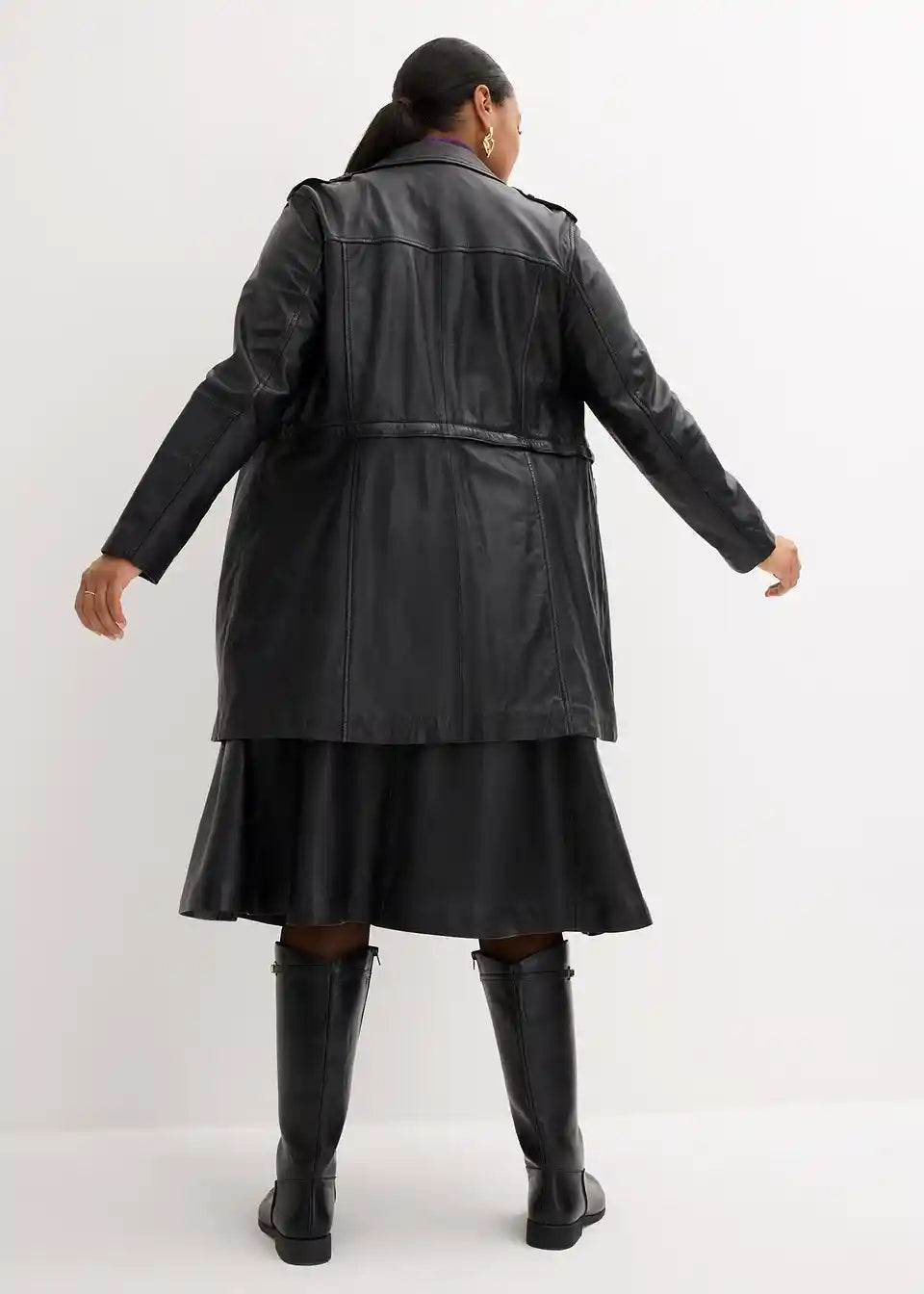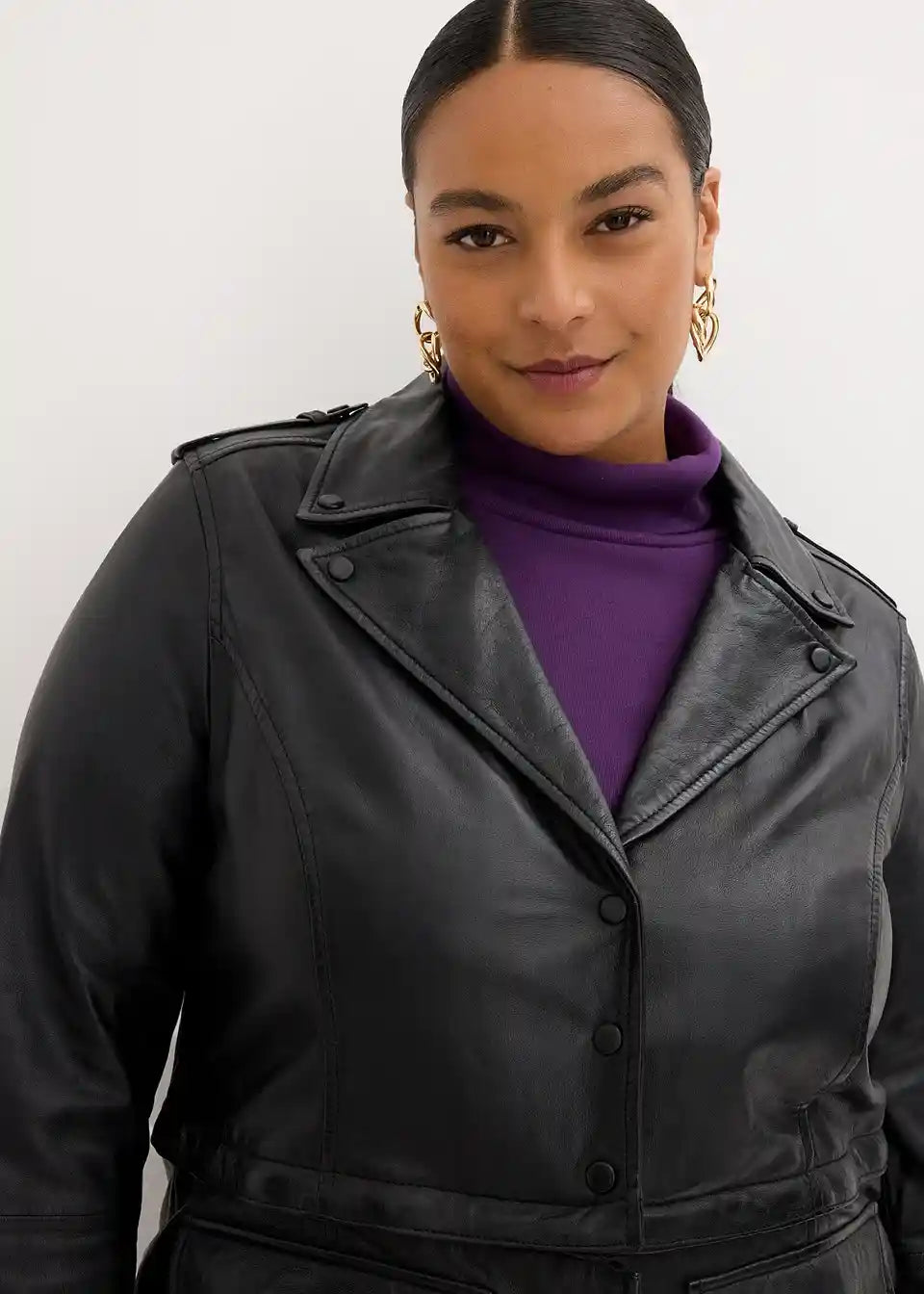 Usnjena jakna s slogi nošenja: kratka različica kot motoristična jakna ali dolga različica kot plašč