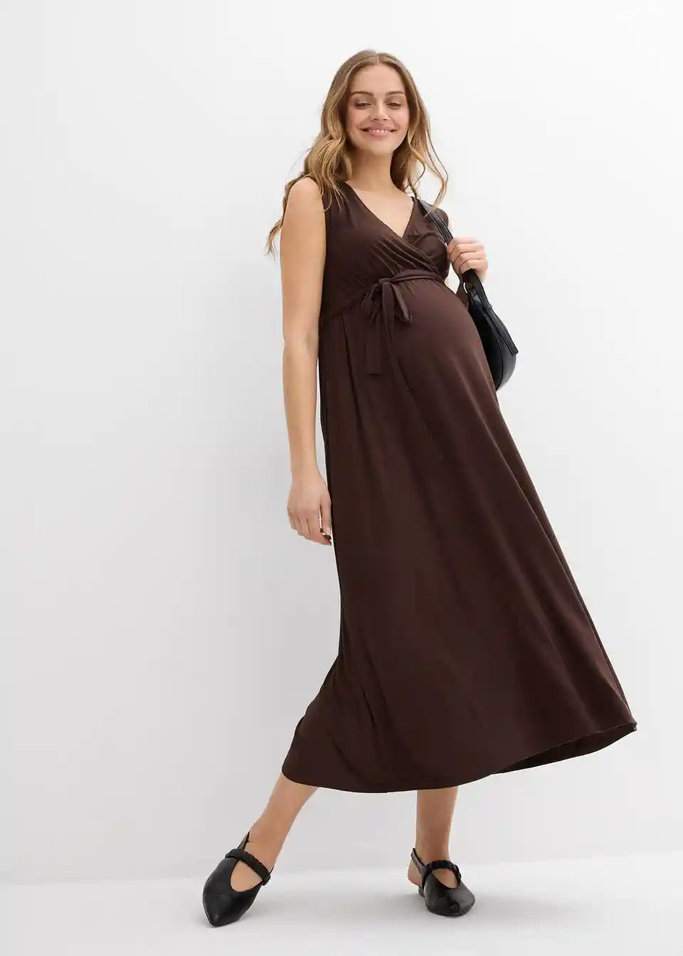 Nosečniška dolga obleka z diskretno funkcijo za dojenje