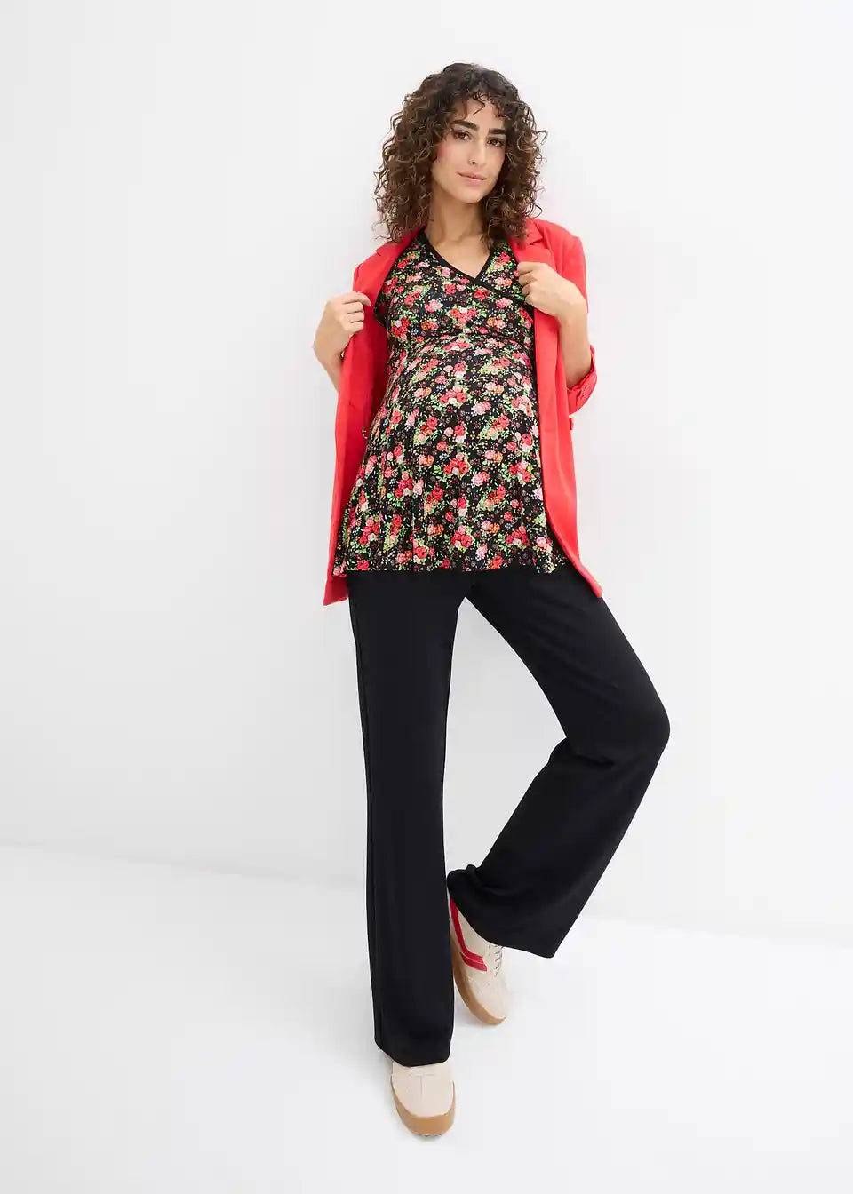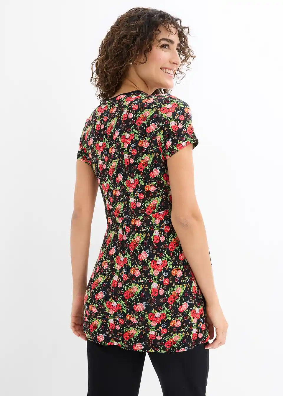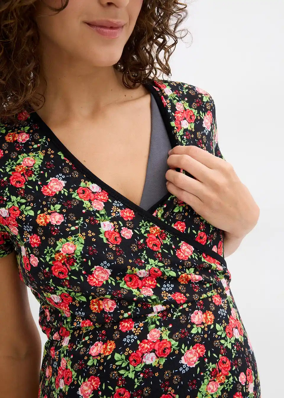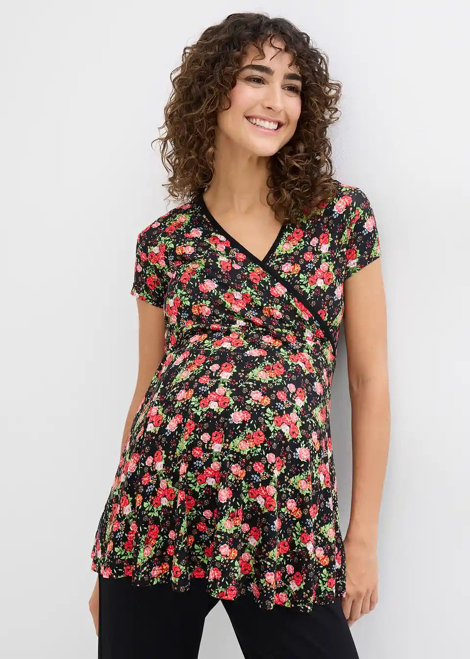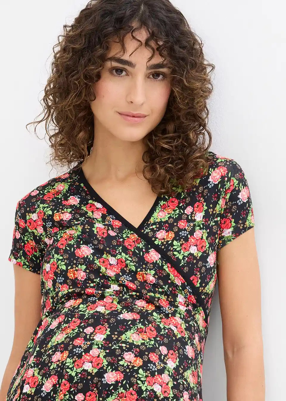 Doječa majica v preklopnem kroju, ki sega do bokov, iz mehkega, zračnega jerseya iz viskoze z V-izrezom in kratkimi rokavi.