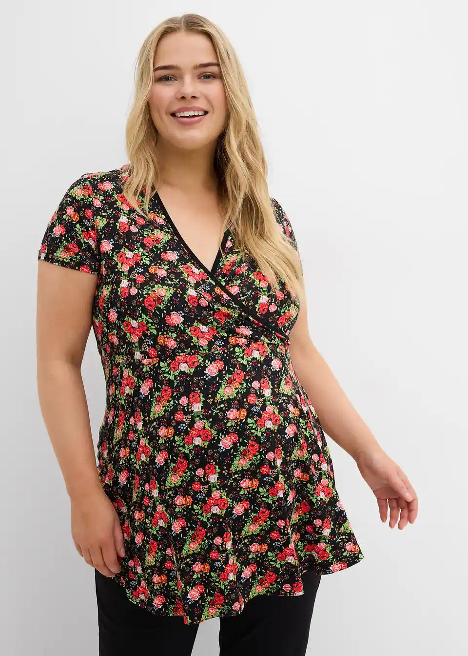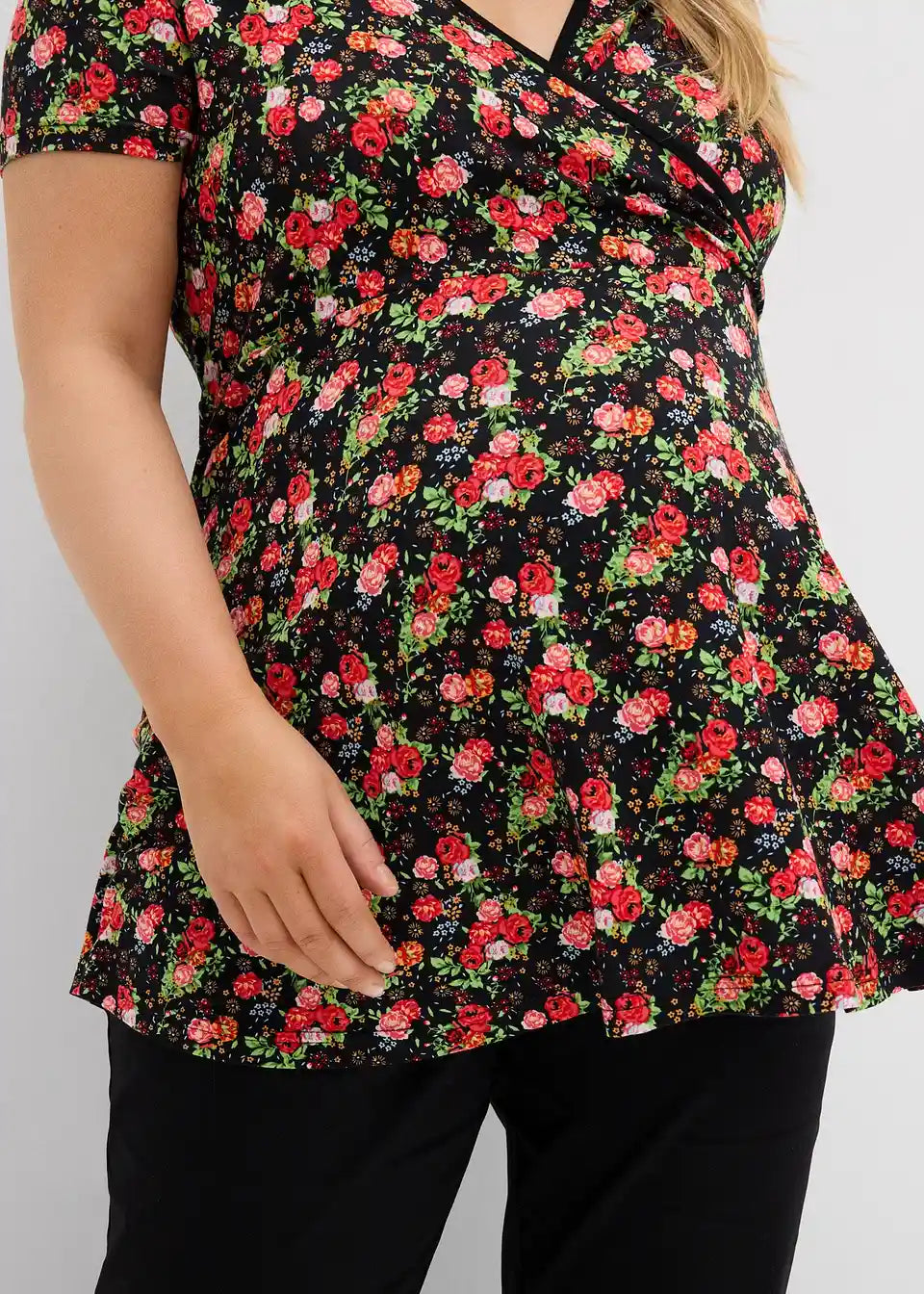 Ohlapna doječa majica s preklopnim krojem iz mehkega, zračnega jerseya iz viskoze z V-izrezom in kratkimi rokavi.