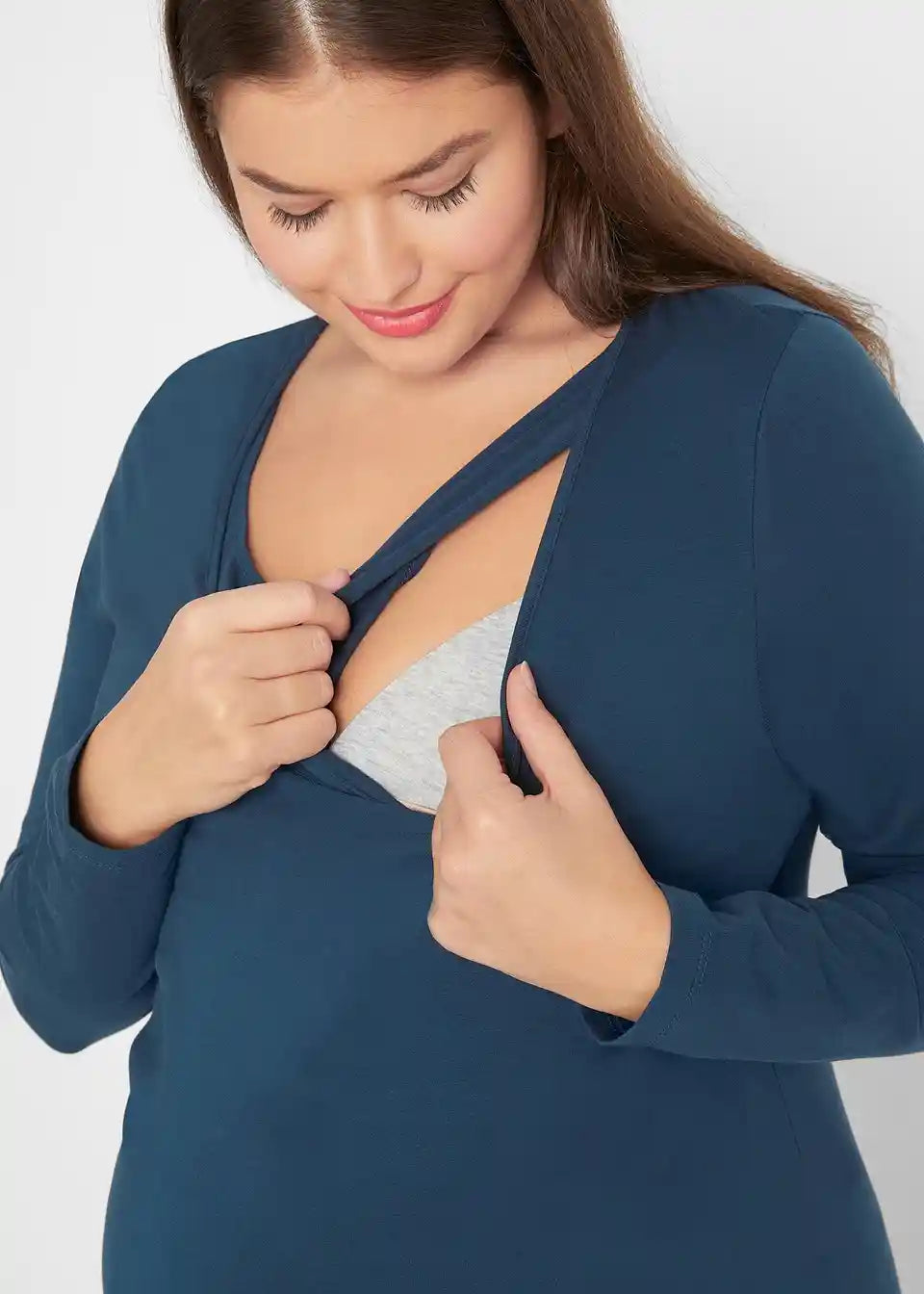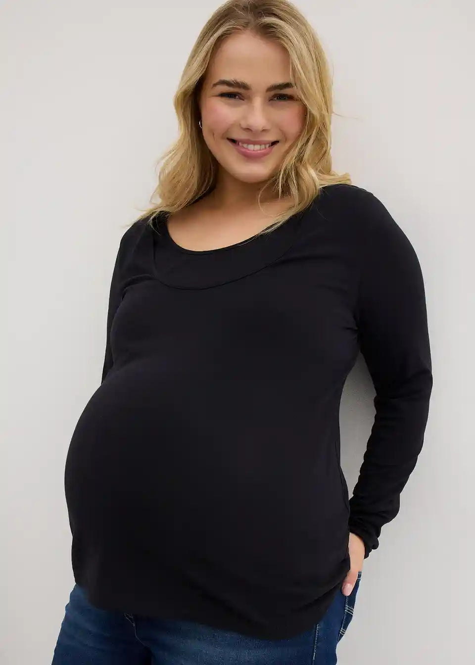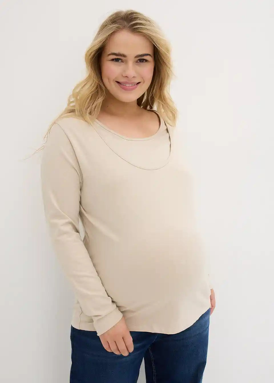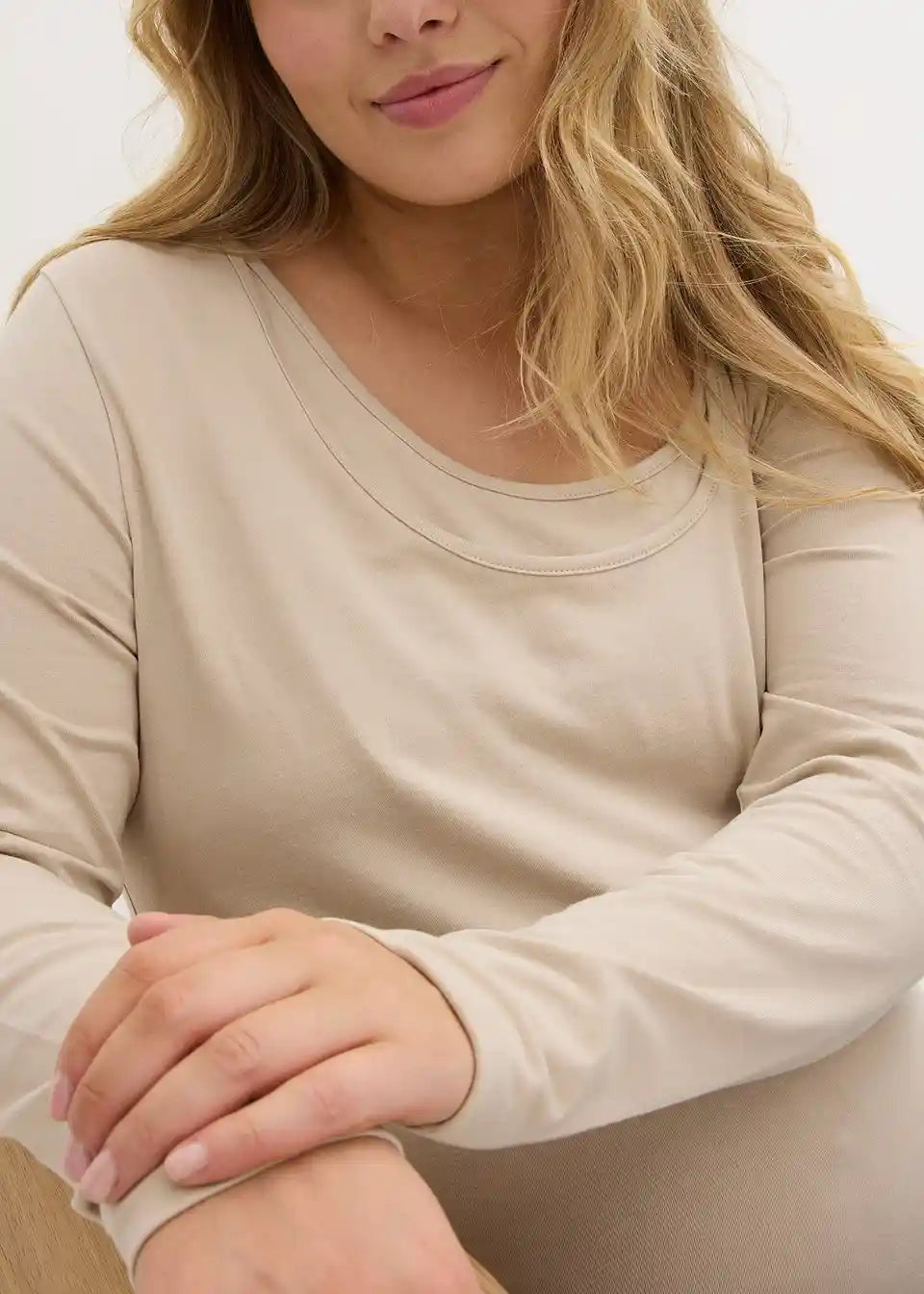 Osnovne majice iz mehkega jerseya iz organskega bombaža z okroglim izrezom in dolgimi rokavi. Dizajn z dvojnimi sloji pomaga preprečevati izgubo toplote in omogoča prijetno dojenje za mamo in otroka.