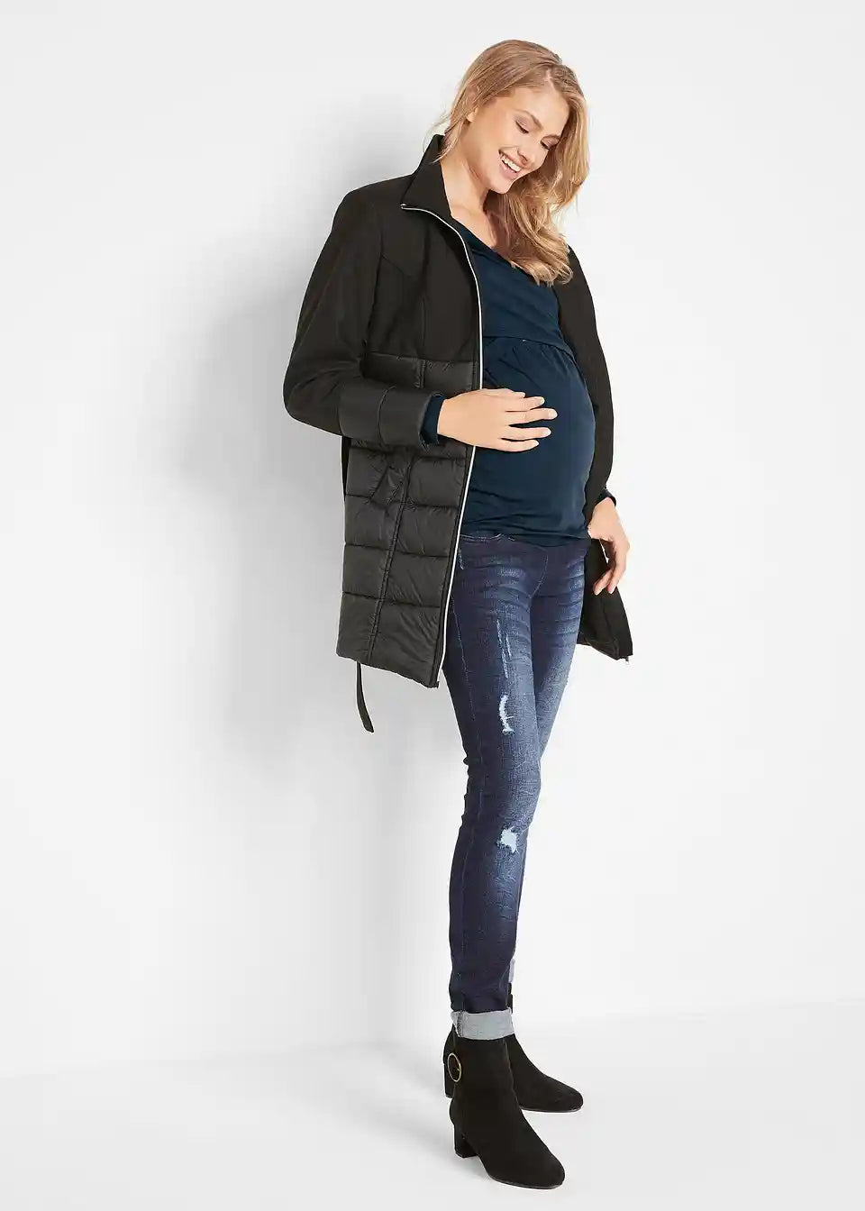 Mehka majica z dolgimi rokavi za nosečnost in po njej