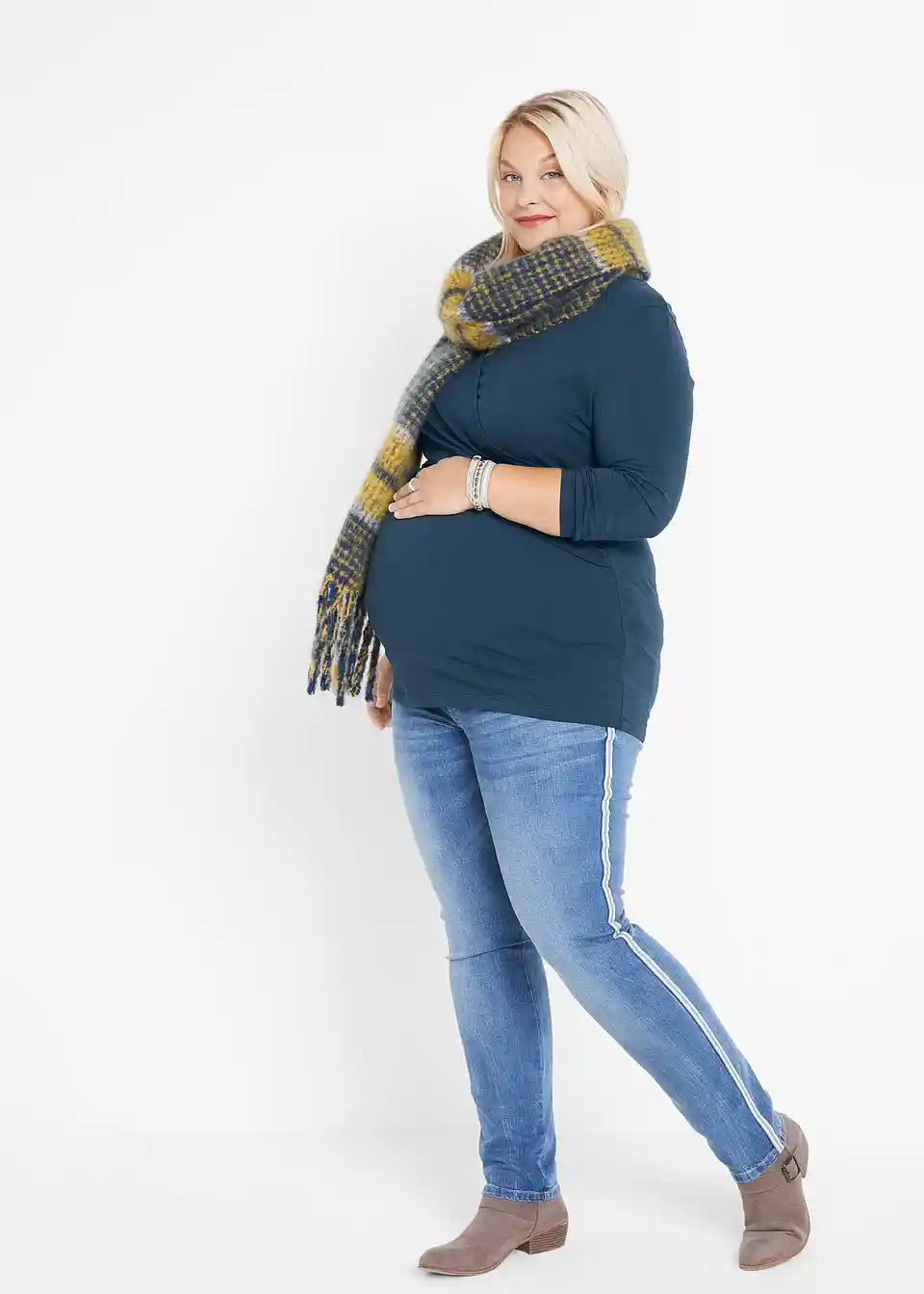 Mehka majica z dolgimi rokavi za nosečnost in po njej