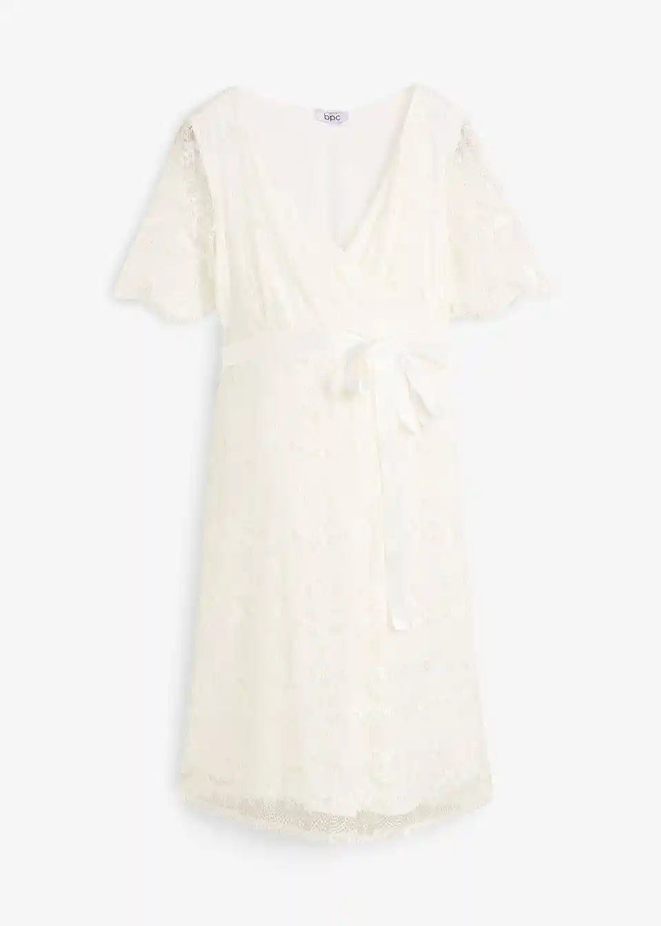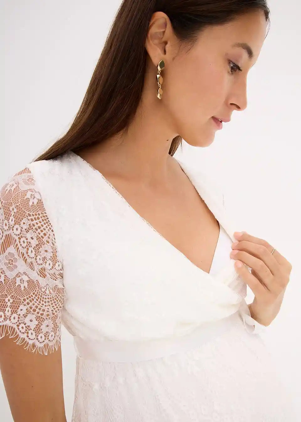Elegantna nosečniška poročna obleka iz mehke raztegljive čipke