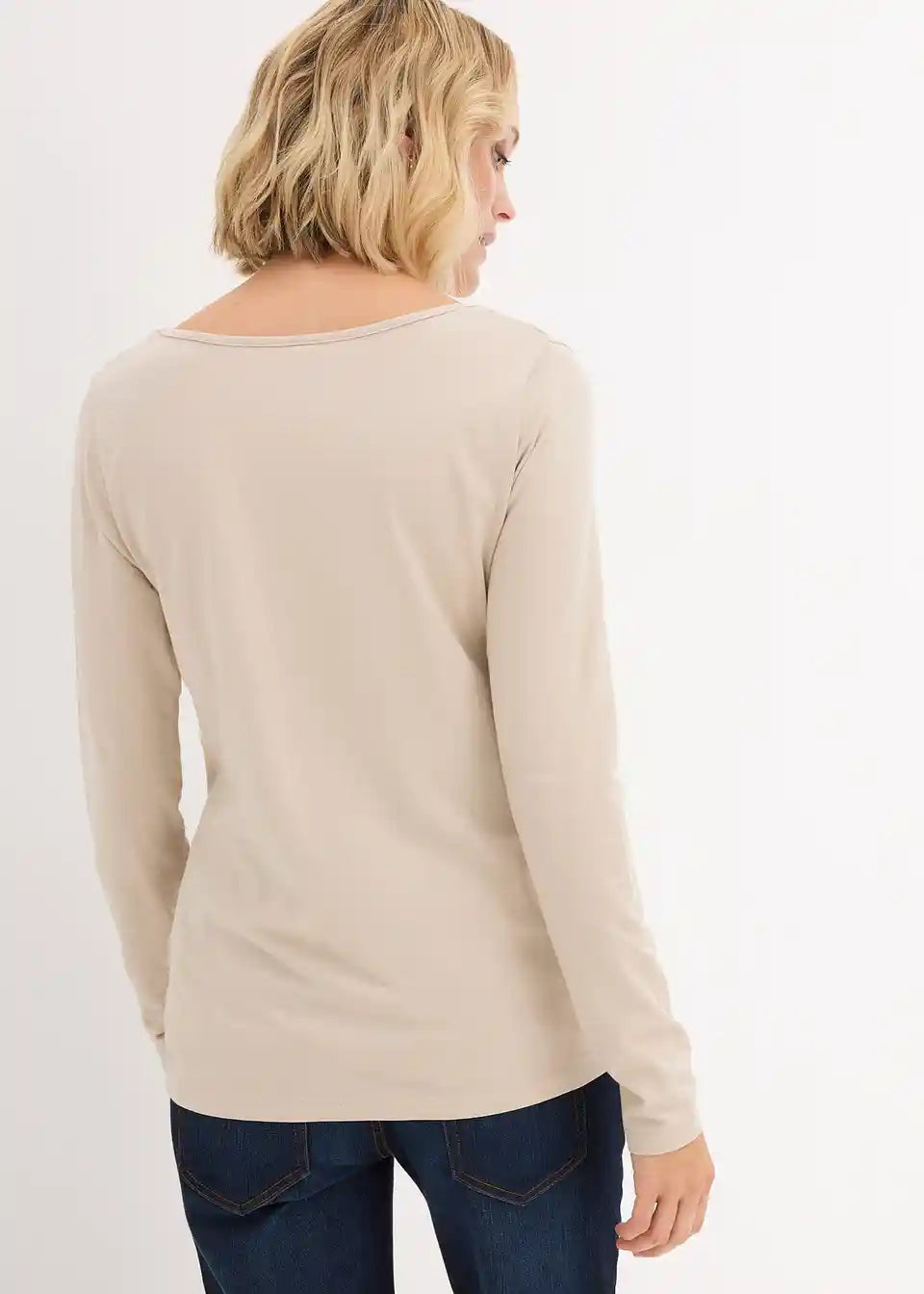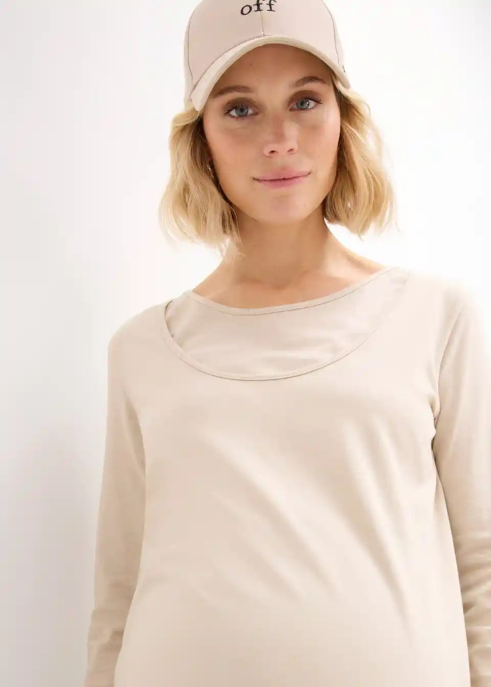 Osnovne majice iz mehkega dresa iz organsko pridelanega bombaža z okroglim izrezom in dolgimi rokavi. Oblikovanje z dvojnimi sloji pomaga preprečevati izgubo toplote in omogoča udobno dojenje za mater in otroka.