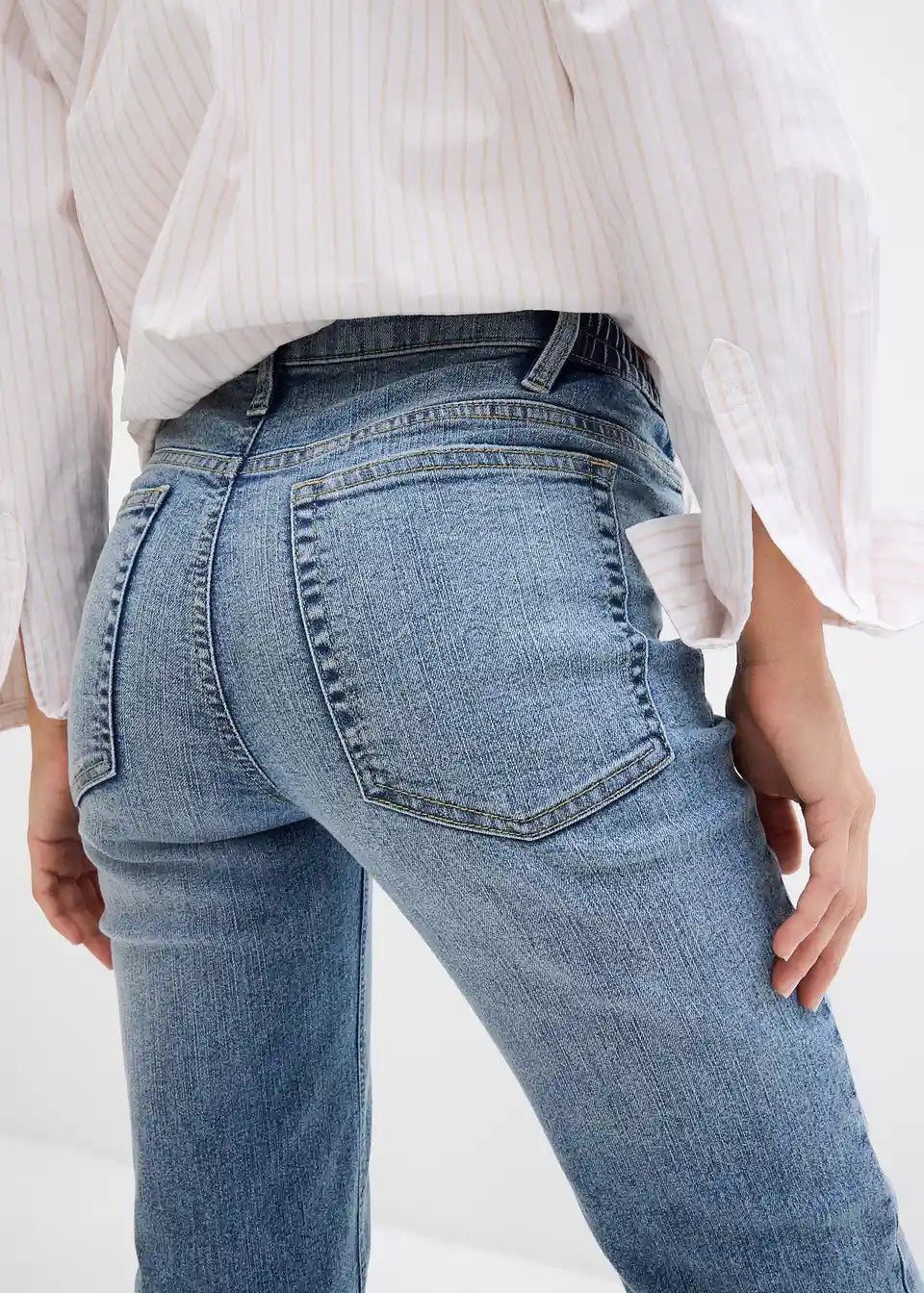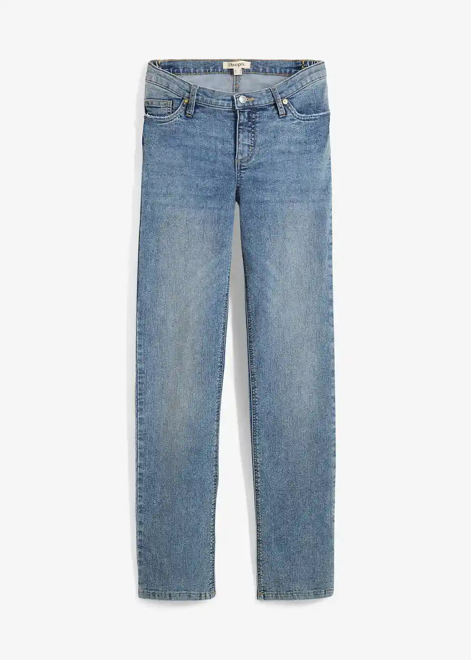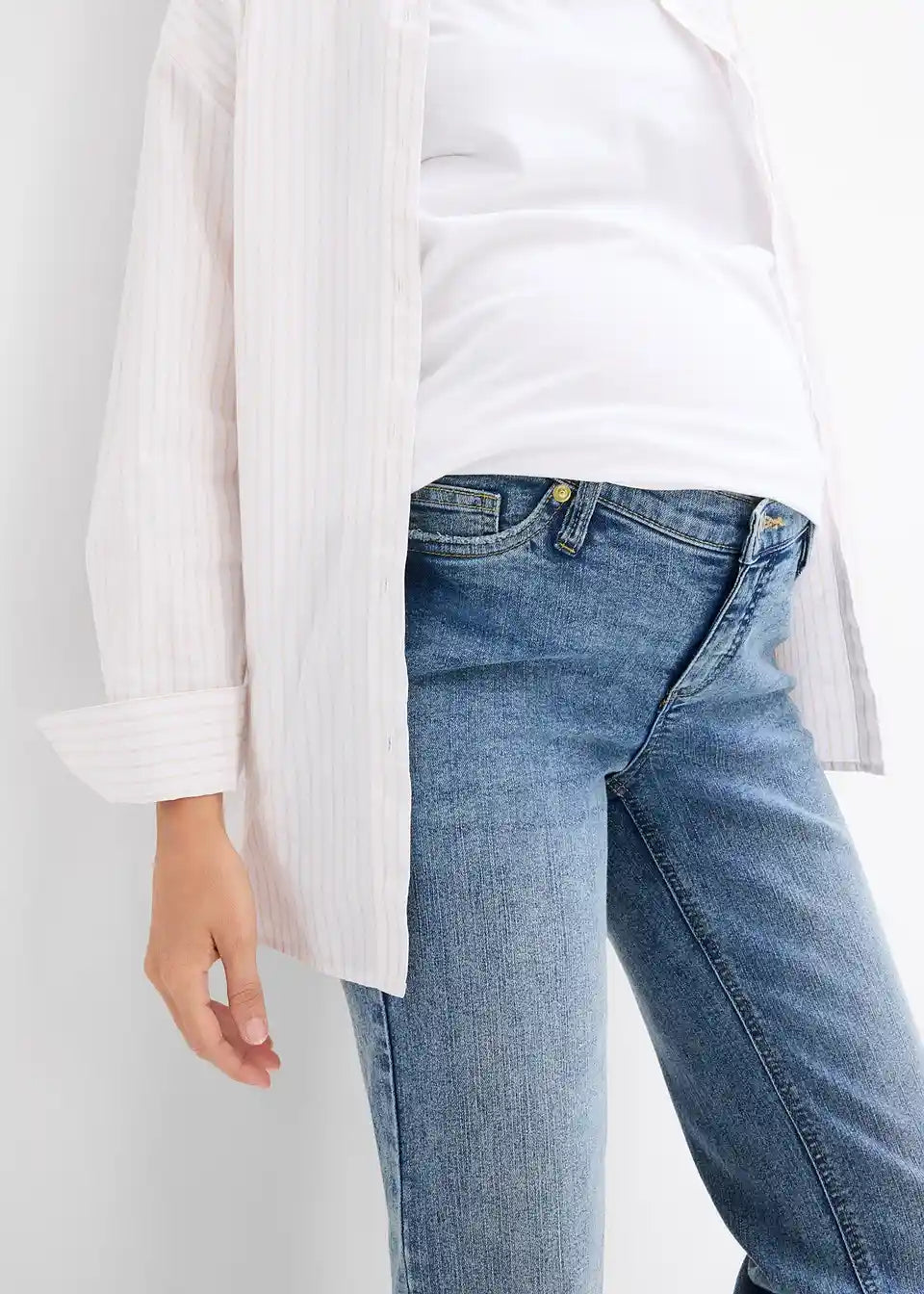Elastične 5-žepne kavbojke iz denima z organskim bombažem zagotavljajo visok udobje nošenja med nosečnostjo in po njej. Nizko postavljen pas ima skrit in nastavljiv elastični trak, kar omogoča nošenje kavbojk tako med nosečnostjo kot tudi po njej. Te nosečniške kavbojke imajo ravne, ohlapno krojene hlačnice.