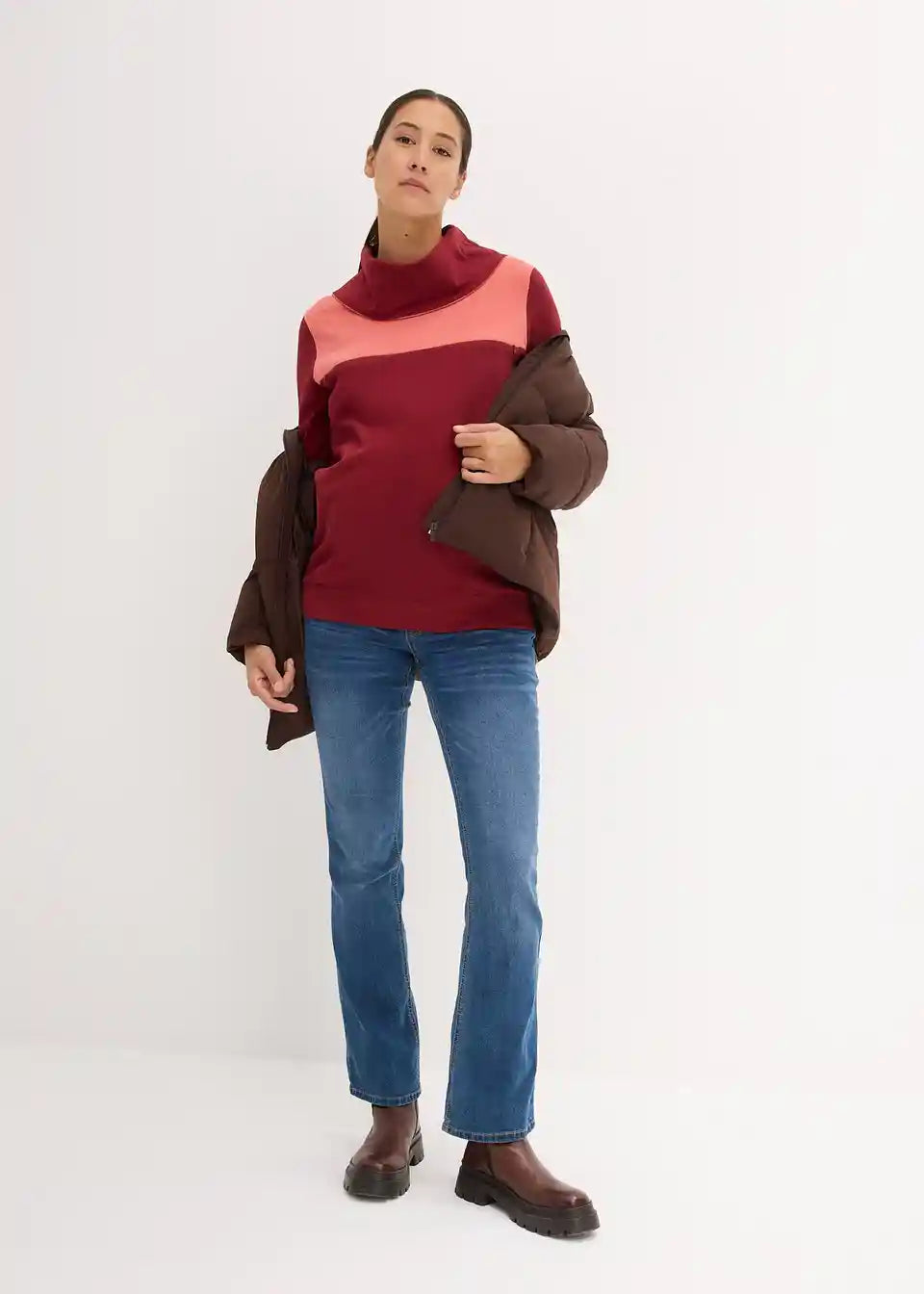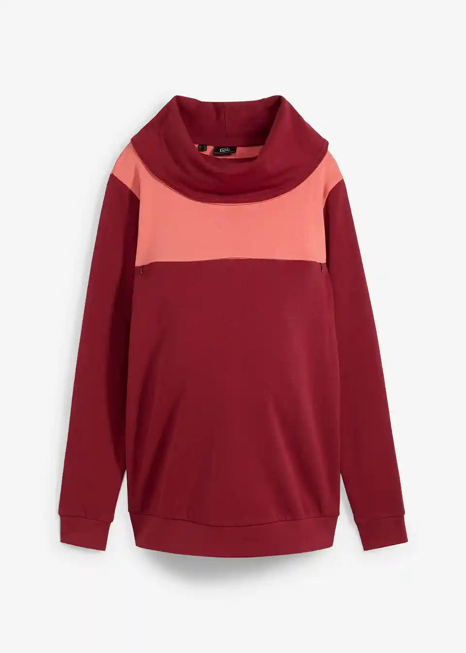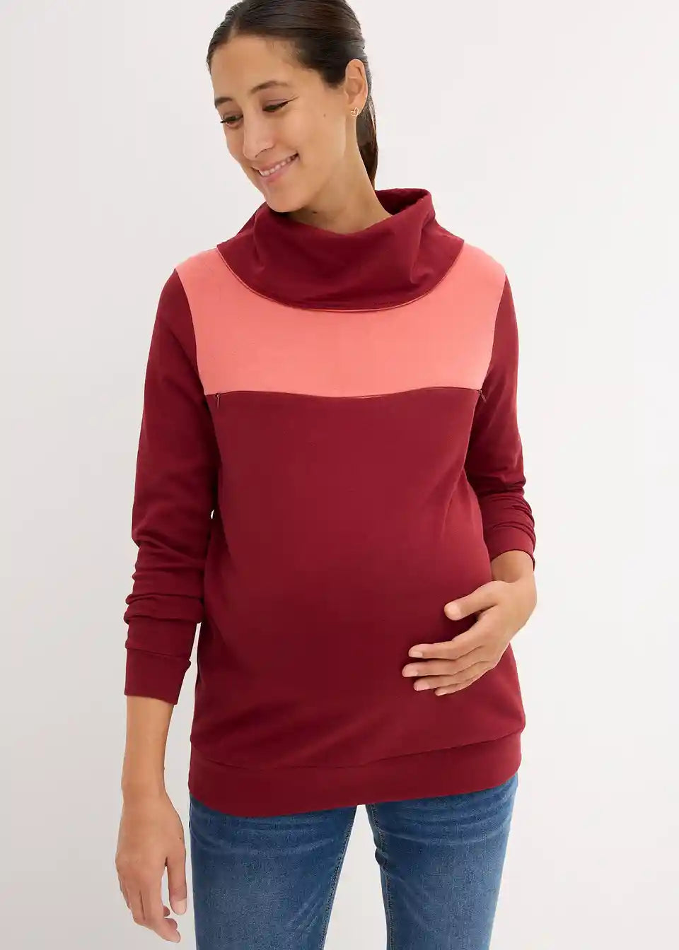 Nosečniški pulover z diskretno funkcijo za dojenje med nosečnostjo in po njej