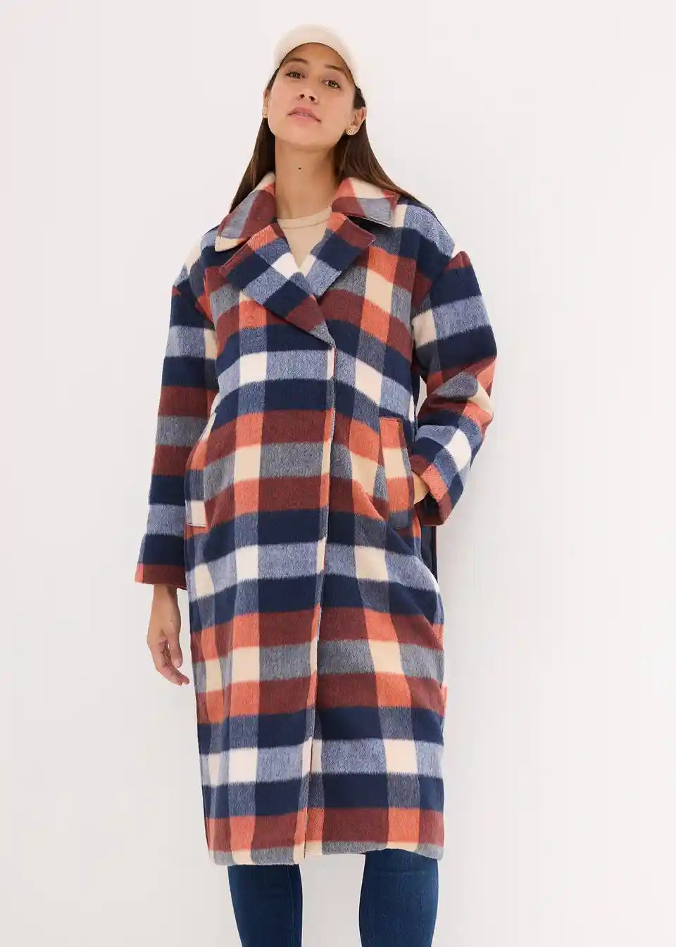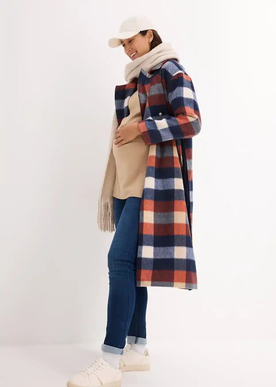 Moden nosečniški plašč s stranskimi zadrgami za prilagoditev širine