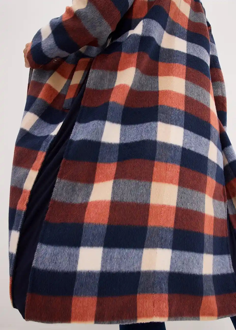 Dolga karirasta plašč iz mehkega tkanega materiala z naraščajočimi reverji in skritimi pritiskači spredaj. S stranskimi zadrgami za prilagoditev širine, ki omogočajo nošenje tako med nosečnostjo kot po njej. Z žepki z obrobo. Podložen.
