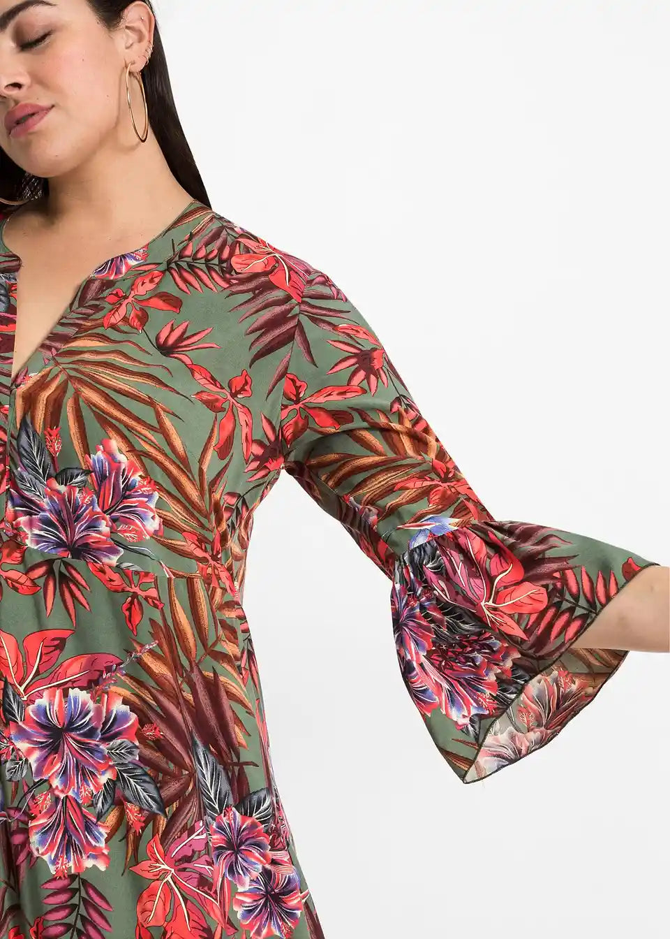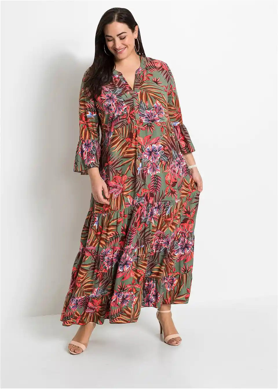Poletna obleka BODYFLIRT. Maksimalna obleka je izdelana z dodatnimi volančki. Dolžina v velikosti 38 približno 140 cm.