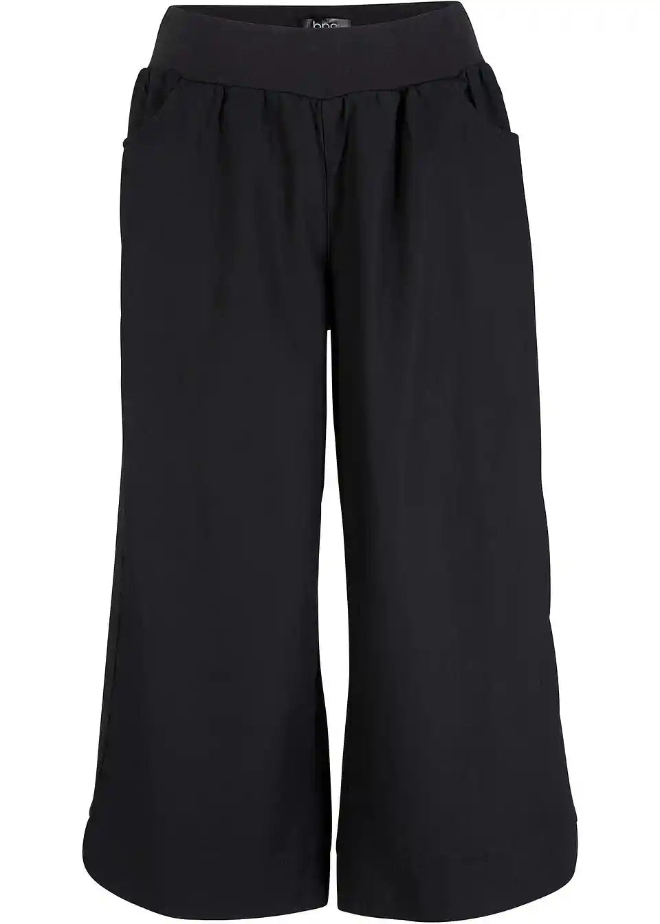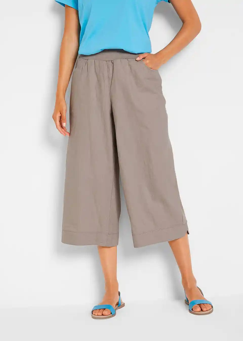 Ohlapno krojene hlače iz lana ponujajo udobje zaradi elastičnega udobnega pasu