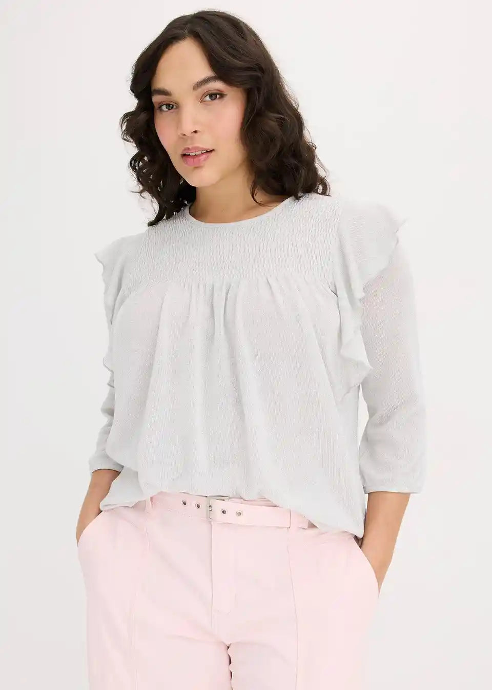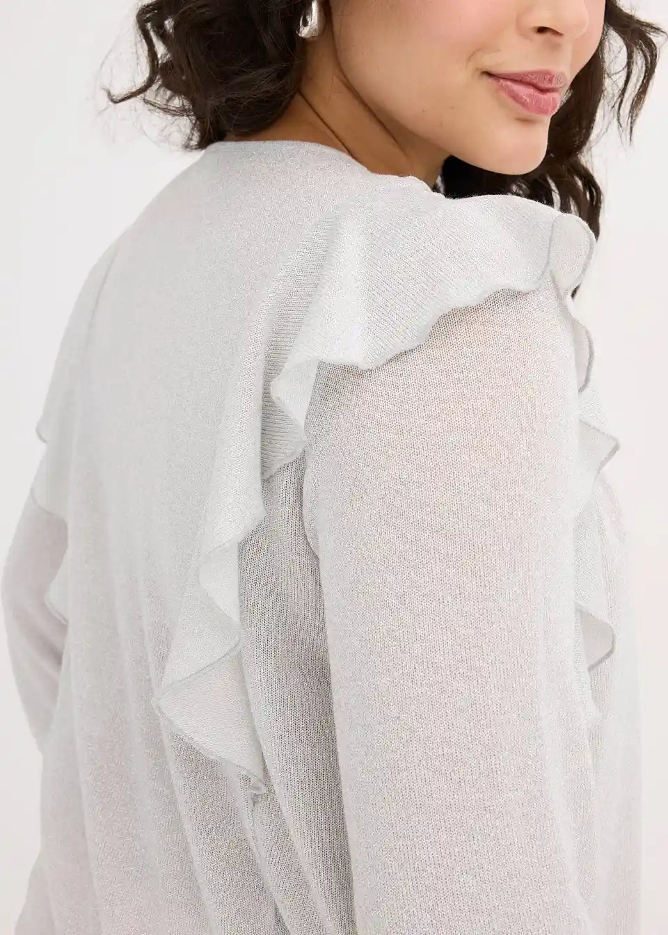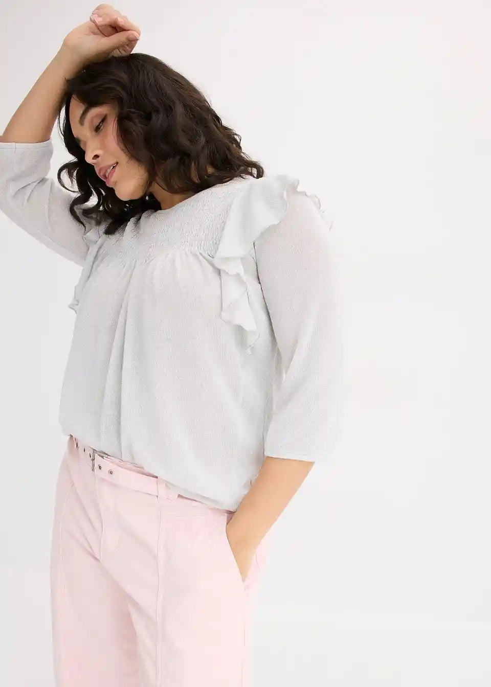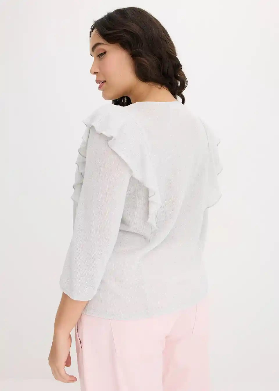 Majica s 3/4-rokavi z volani in lureks vlakni
