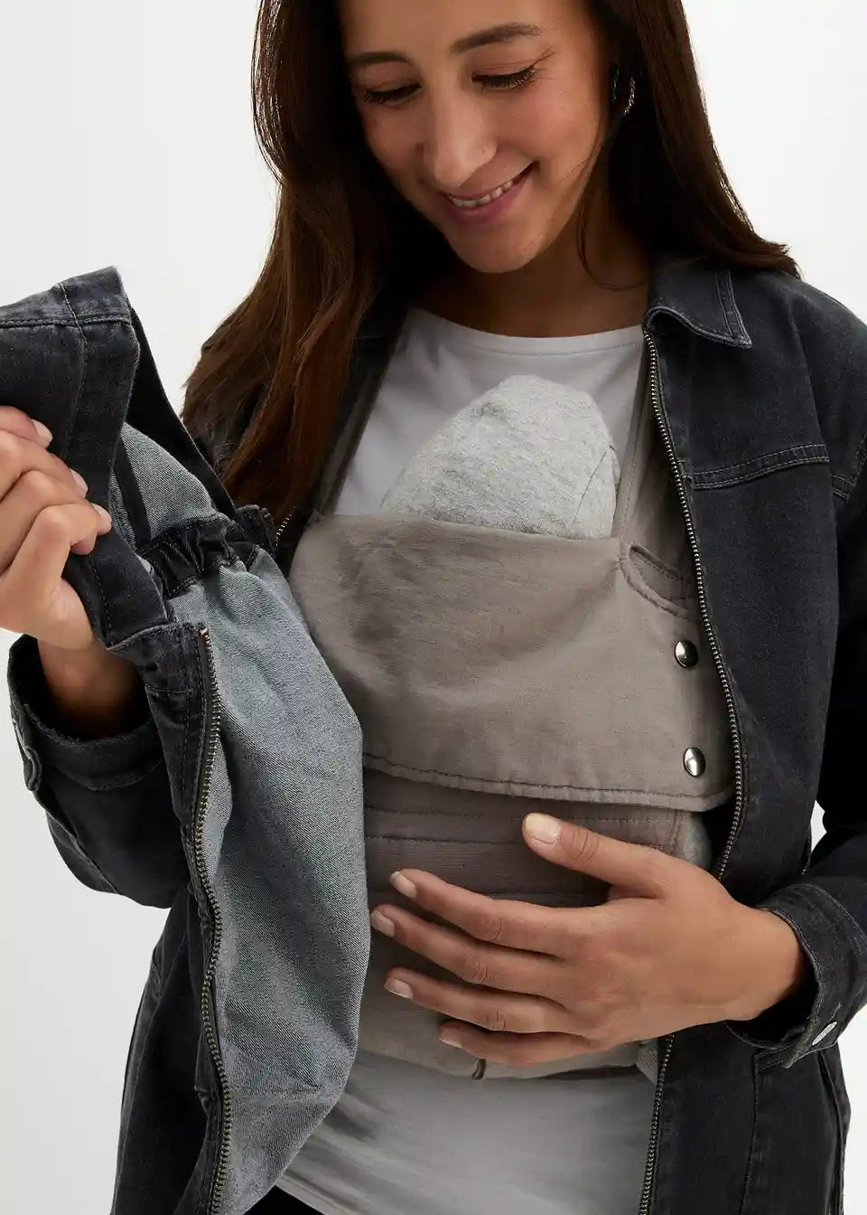 Nosečniška denim jakna za nosečnost in kasneje z nosilnim vložkom