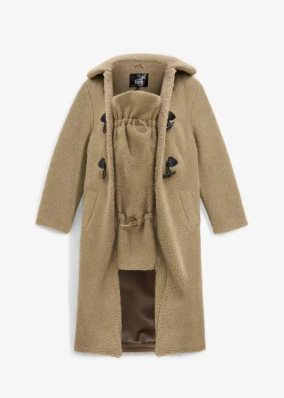 3-v-1 nosečniški plašč z dodatkom za nošenje dojenčka iz umetnega ovčjega krzna