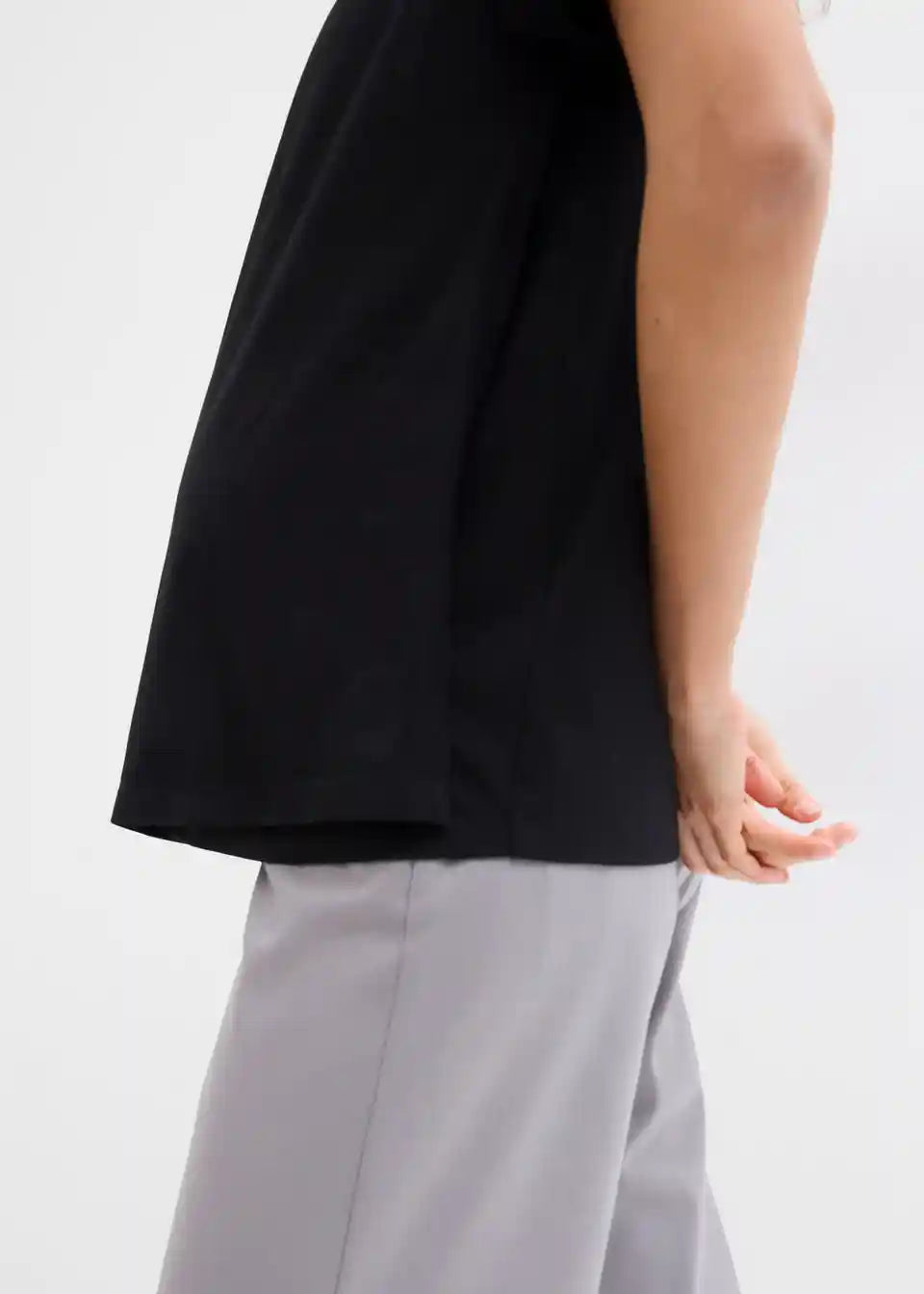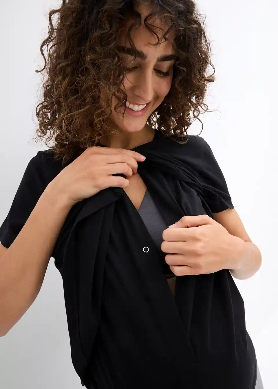 Mehke nosečniške majice iz jerseya z neopazno funkcijo dojenja s stranskim razporkom za dvigovanje. Dizajn z dvojnimi plastmi pomaga preprečiti izgubo toplote in omogoča prijetno dojenje za mamo in otroka.