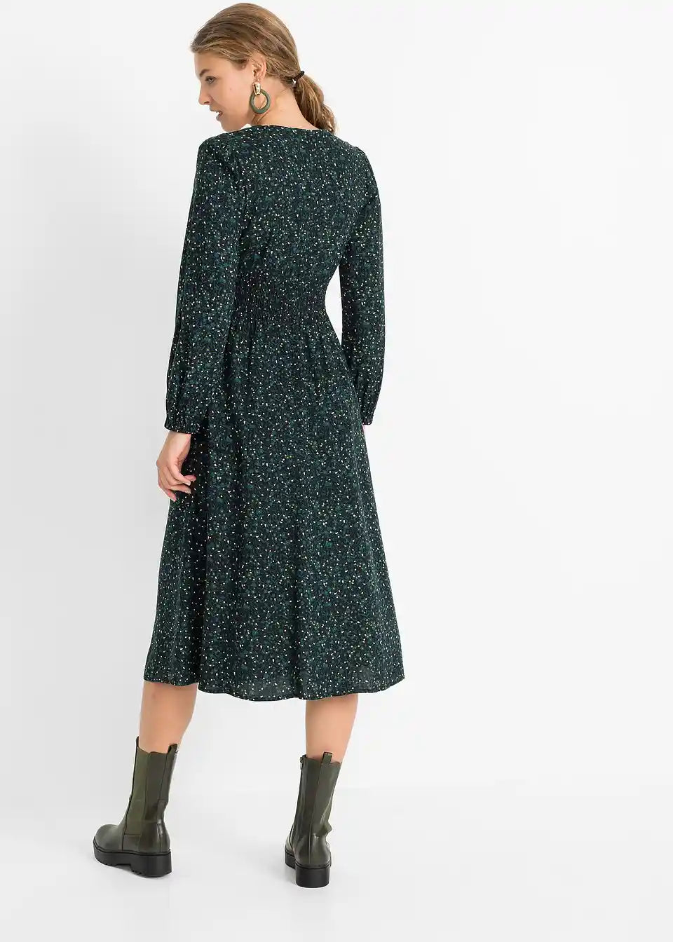 Jesenska midi obleka iz trajnostne viskoze