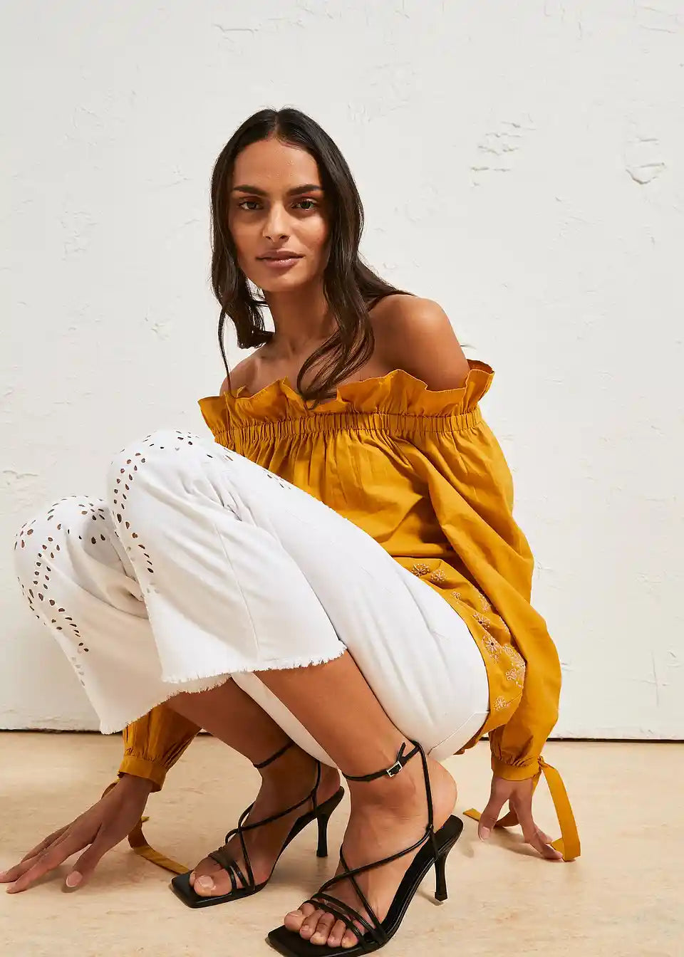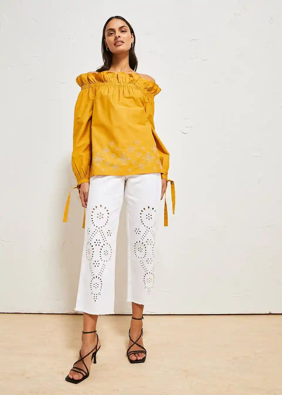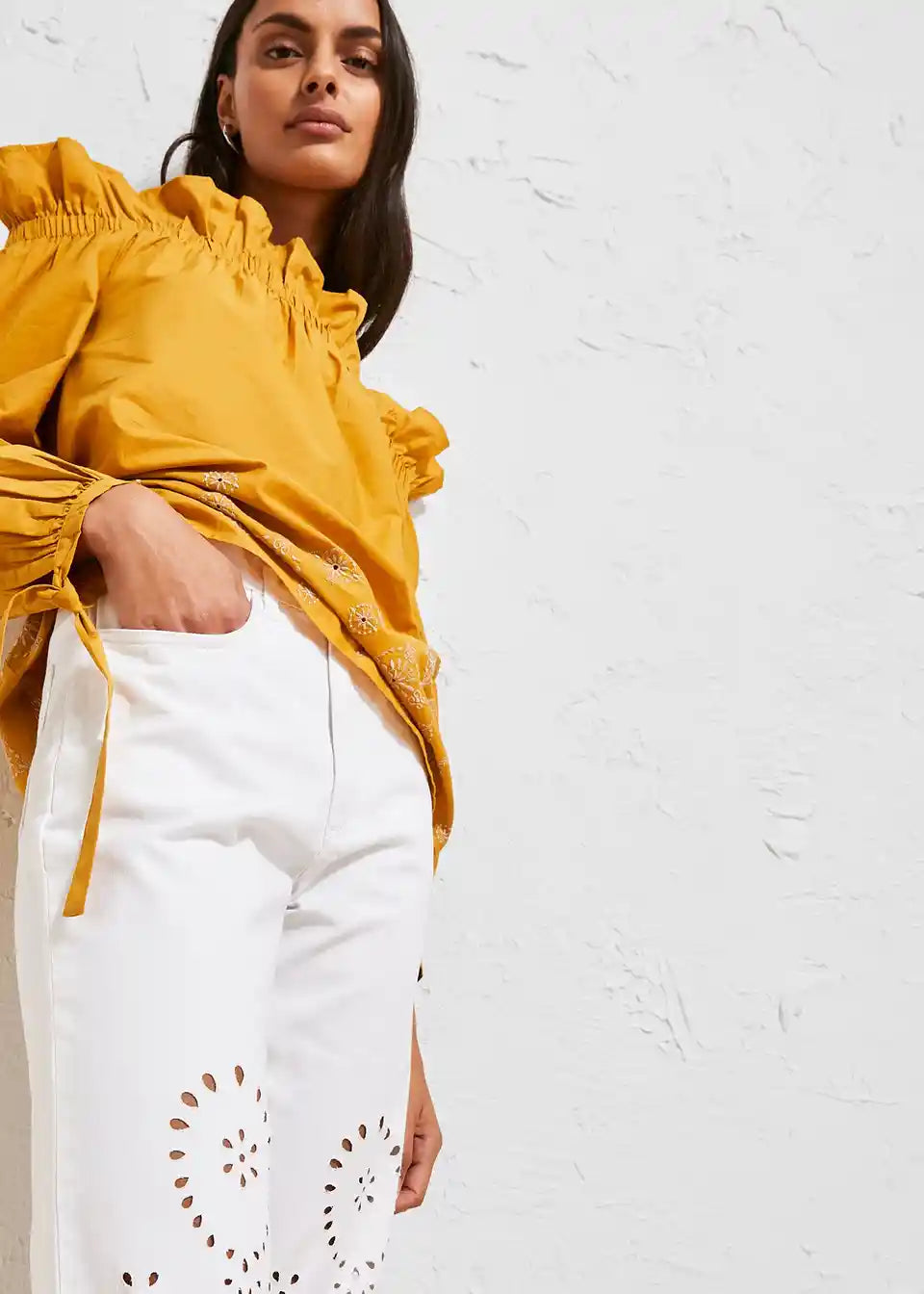Izrazite 7/8 kavbojke z odprtim vezenjem.