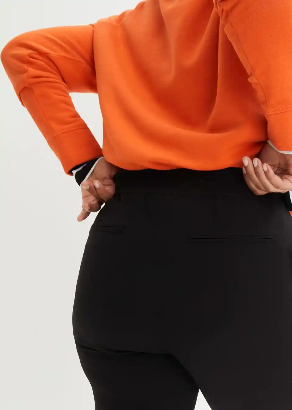 Posebnosti kroja:za veliko udobja pri nošenju, z elastičnimi všitki za večjo svobodo pri gibanju ter s stretchem za dodatno udobje, za zakrito zadnjico in boke ter udobje na stegnih