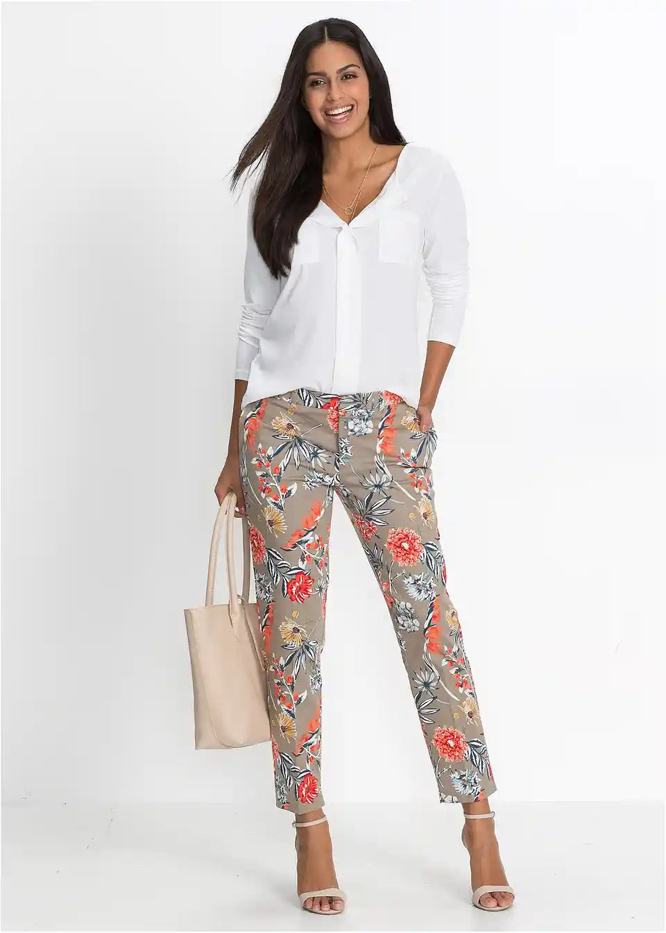 Lepe 7/8 raztegljive hlače z modnim potiskom po celotni površini