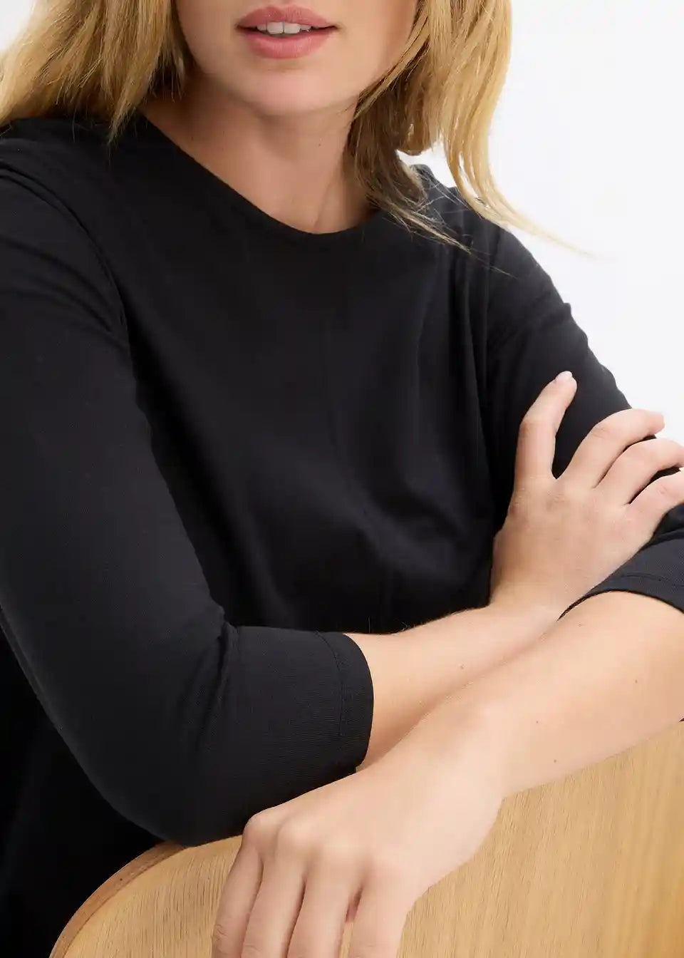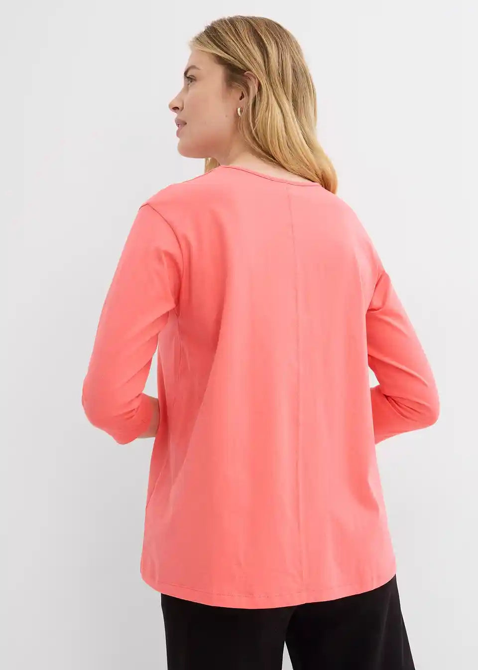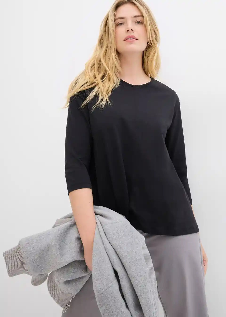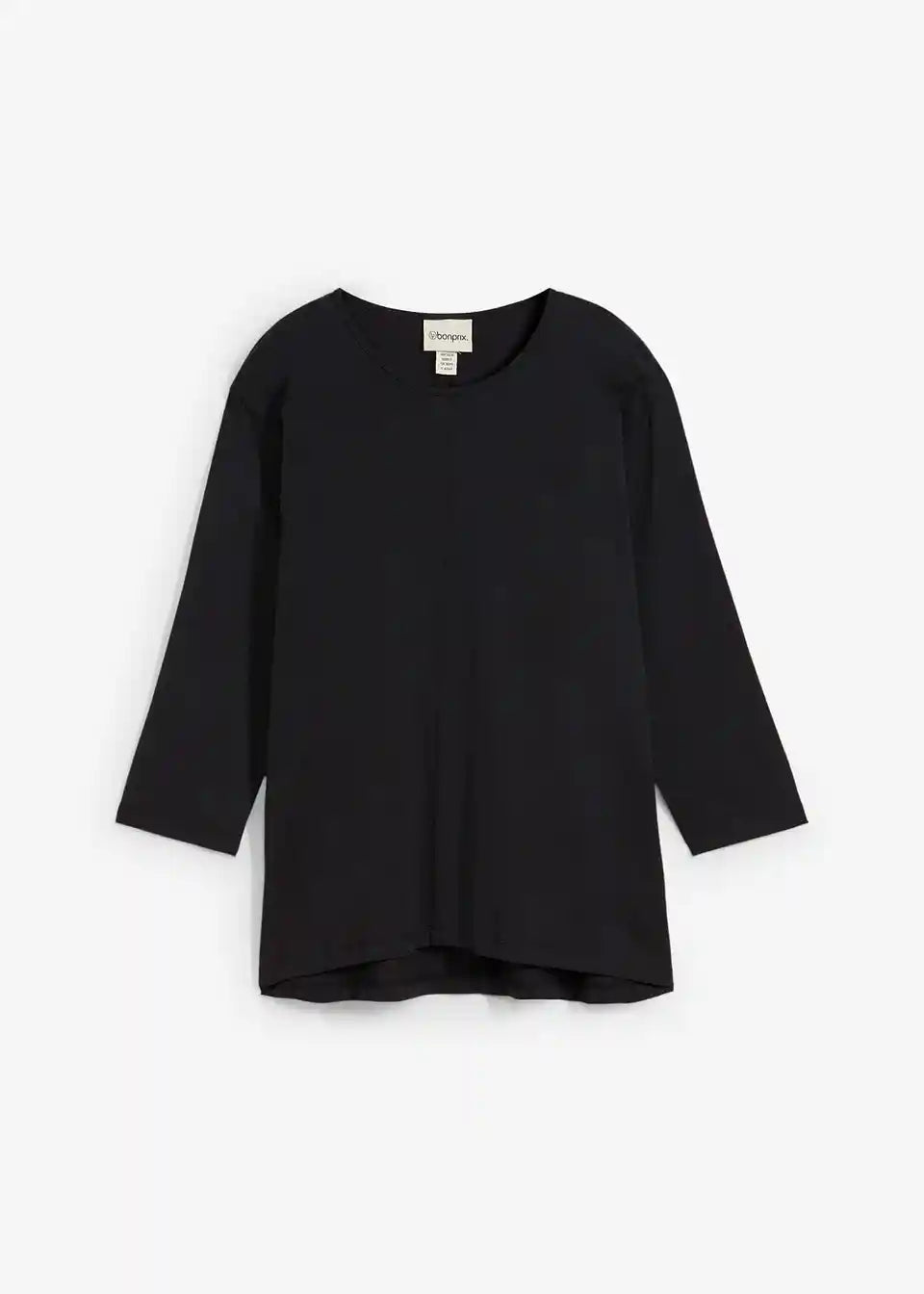 Bombažna majica z asimetričnim robom, ¾ rokav