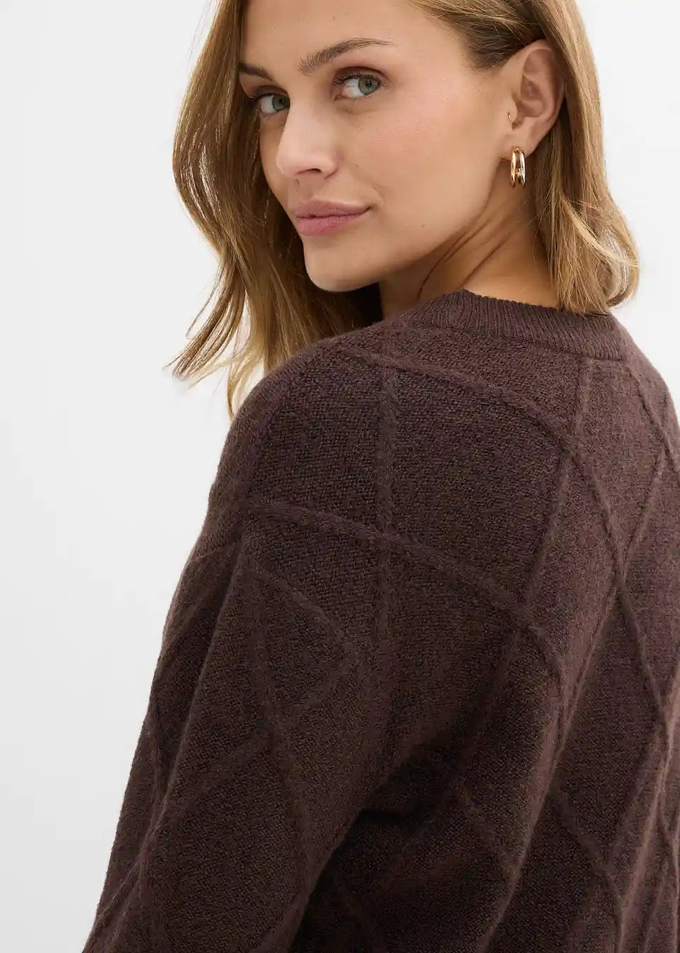 Ohlapen pulover iz kitaste pletenine