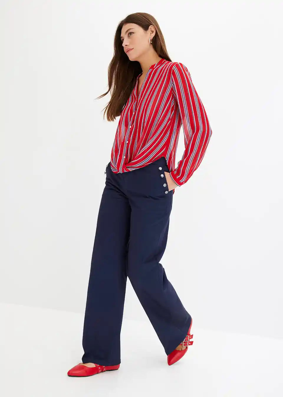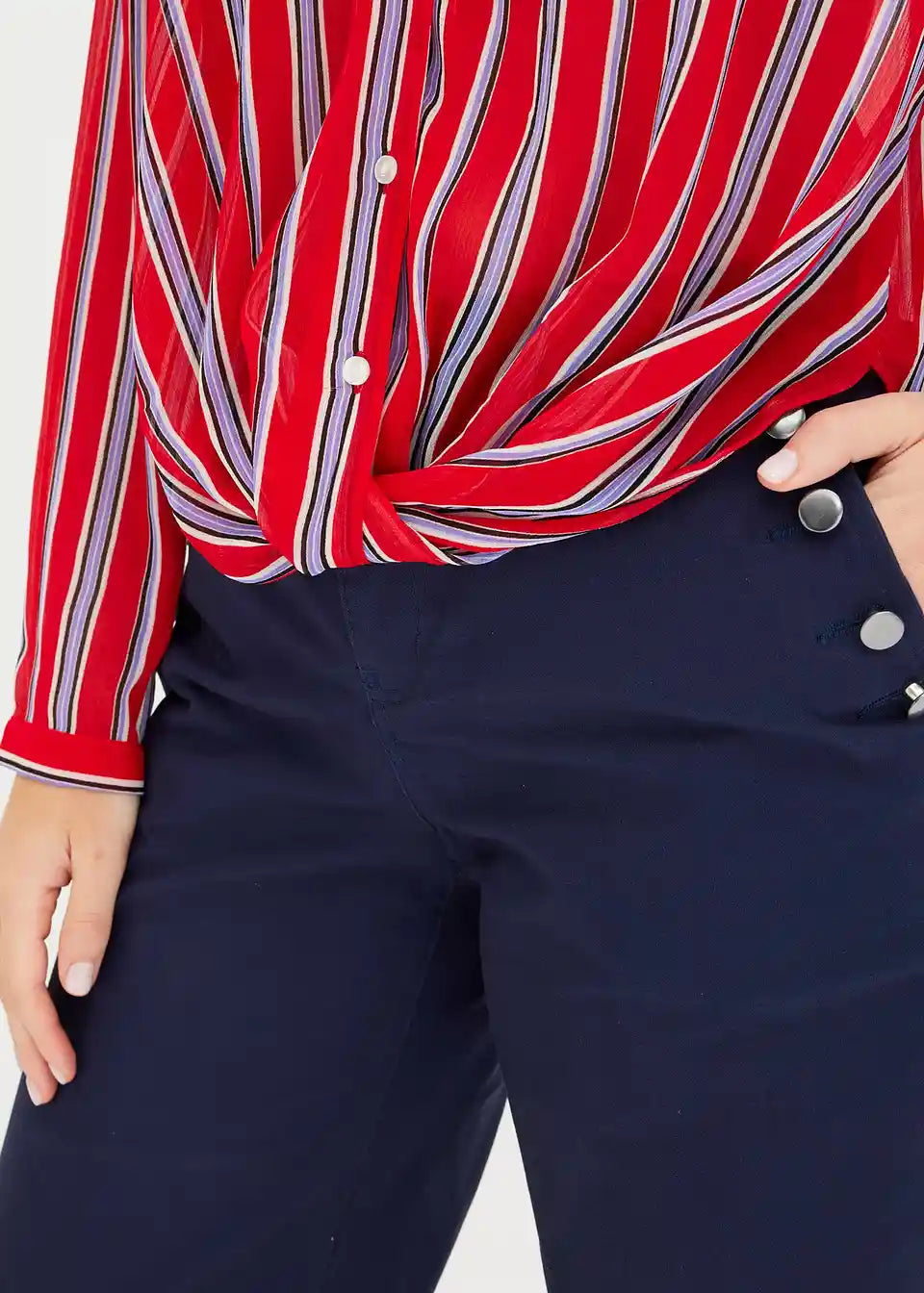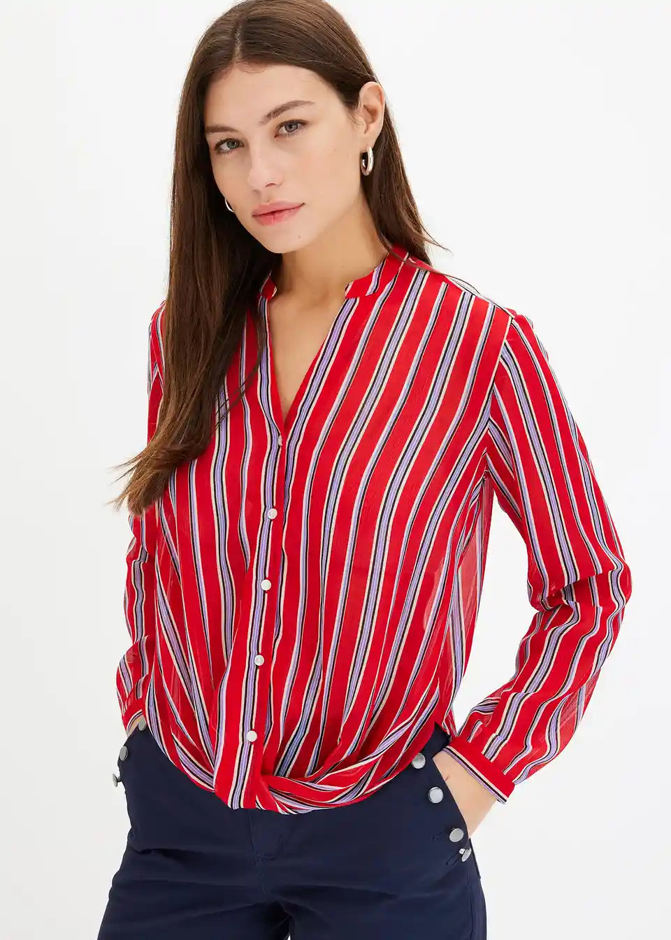 modna bluza s črtastim potiskom in drapiranjem spredaj na robu