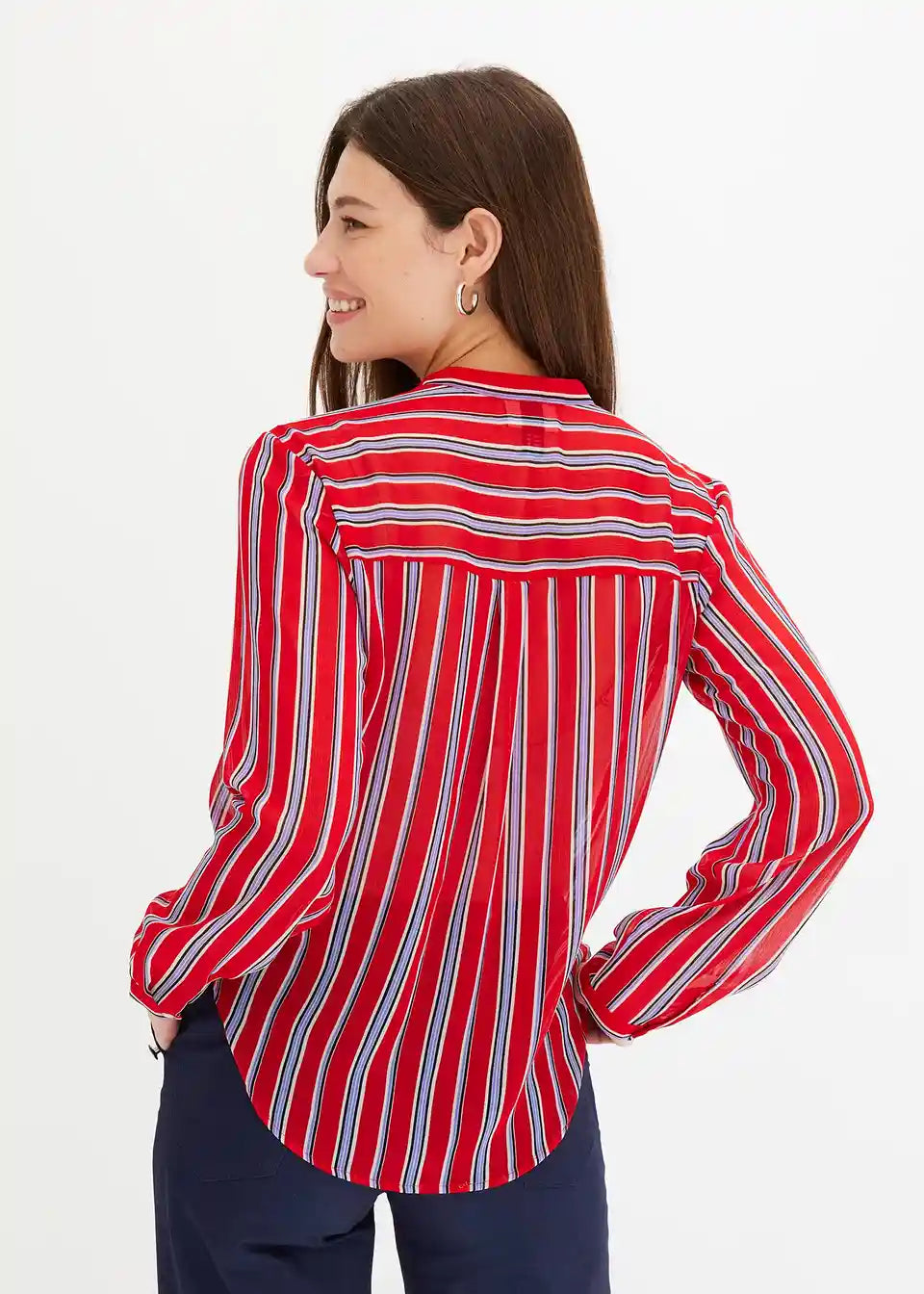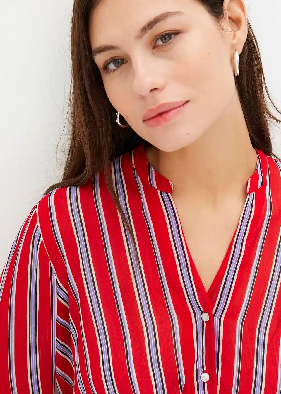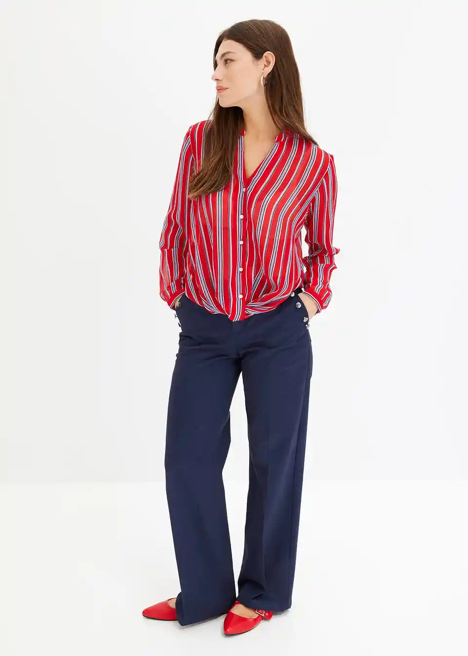 modna bluza s črtastim potiskom in drapiranjem spredaj na robu