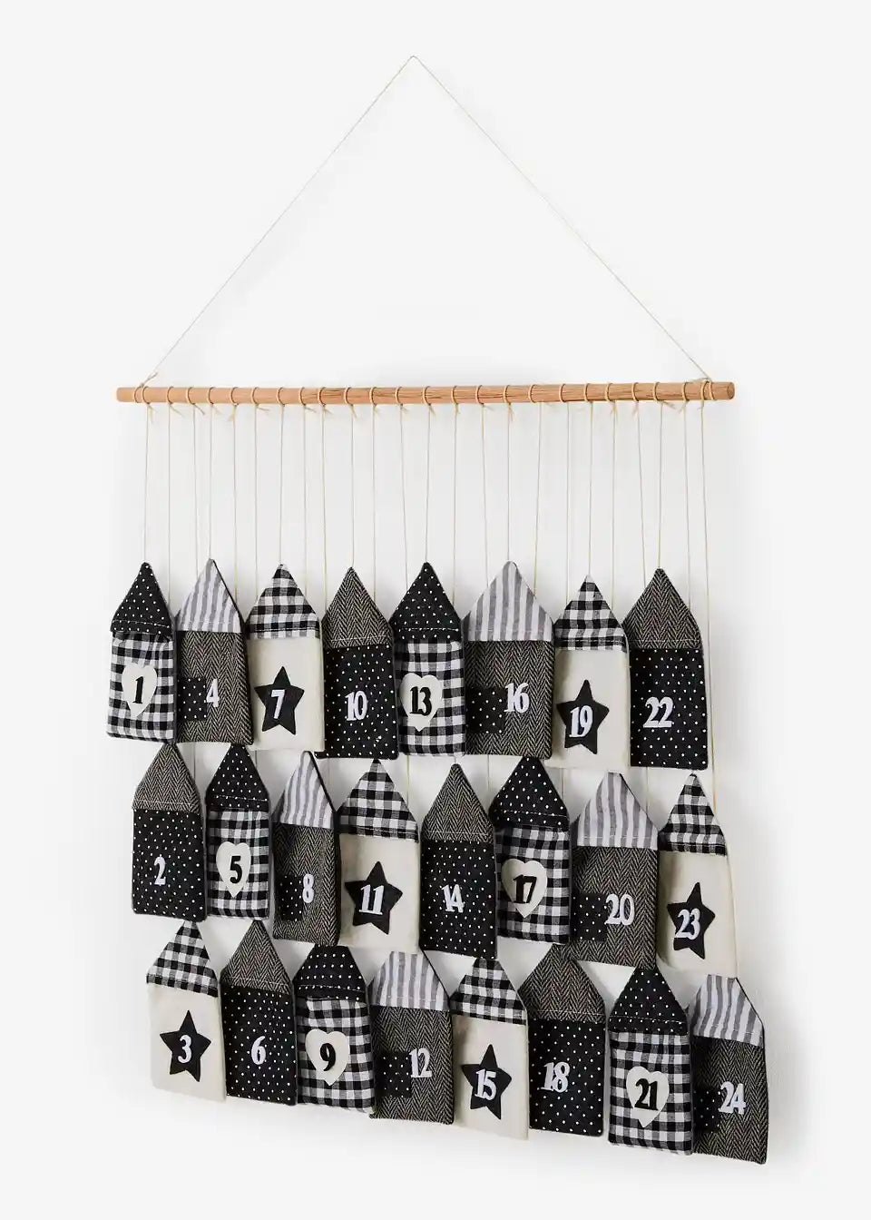 Odkrij čar božičnega časa: naš adventni koledar v očarljivem hišnem dizajnu s 24 vrečkami, ki čakajo, da jih obesiš in dan za dnem odpreš.