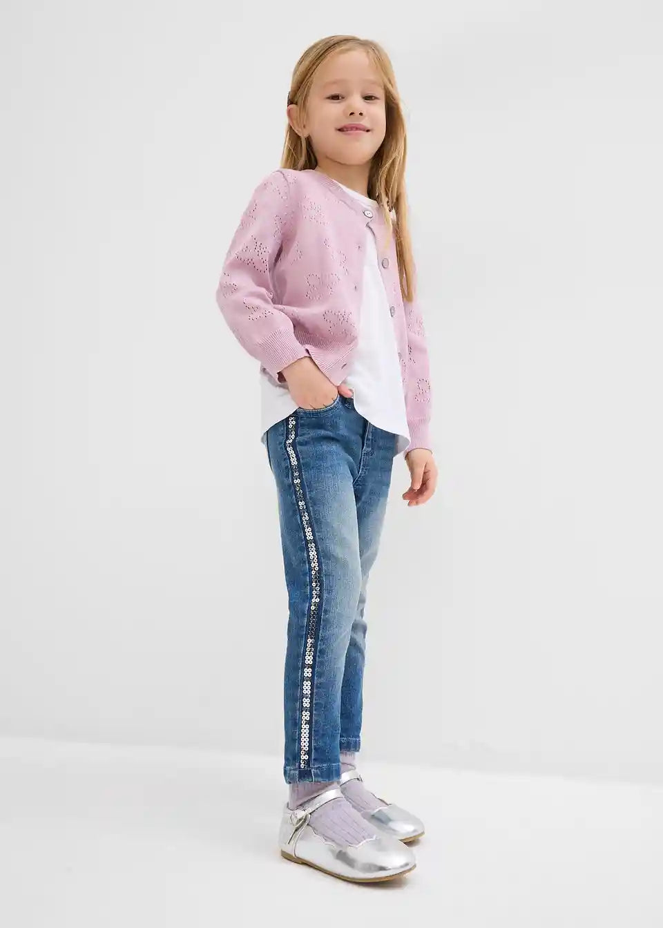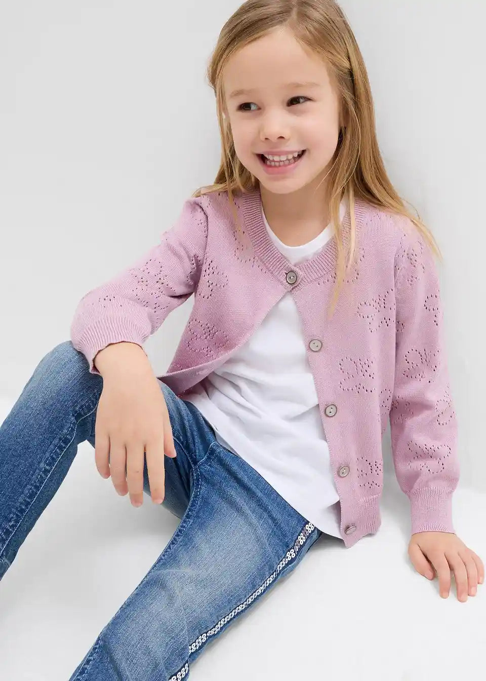 Dekorativna Ajour fina pletena jakna za deklice