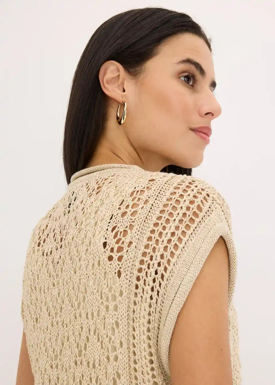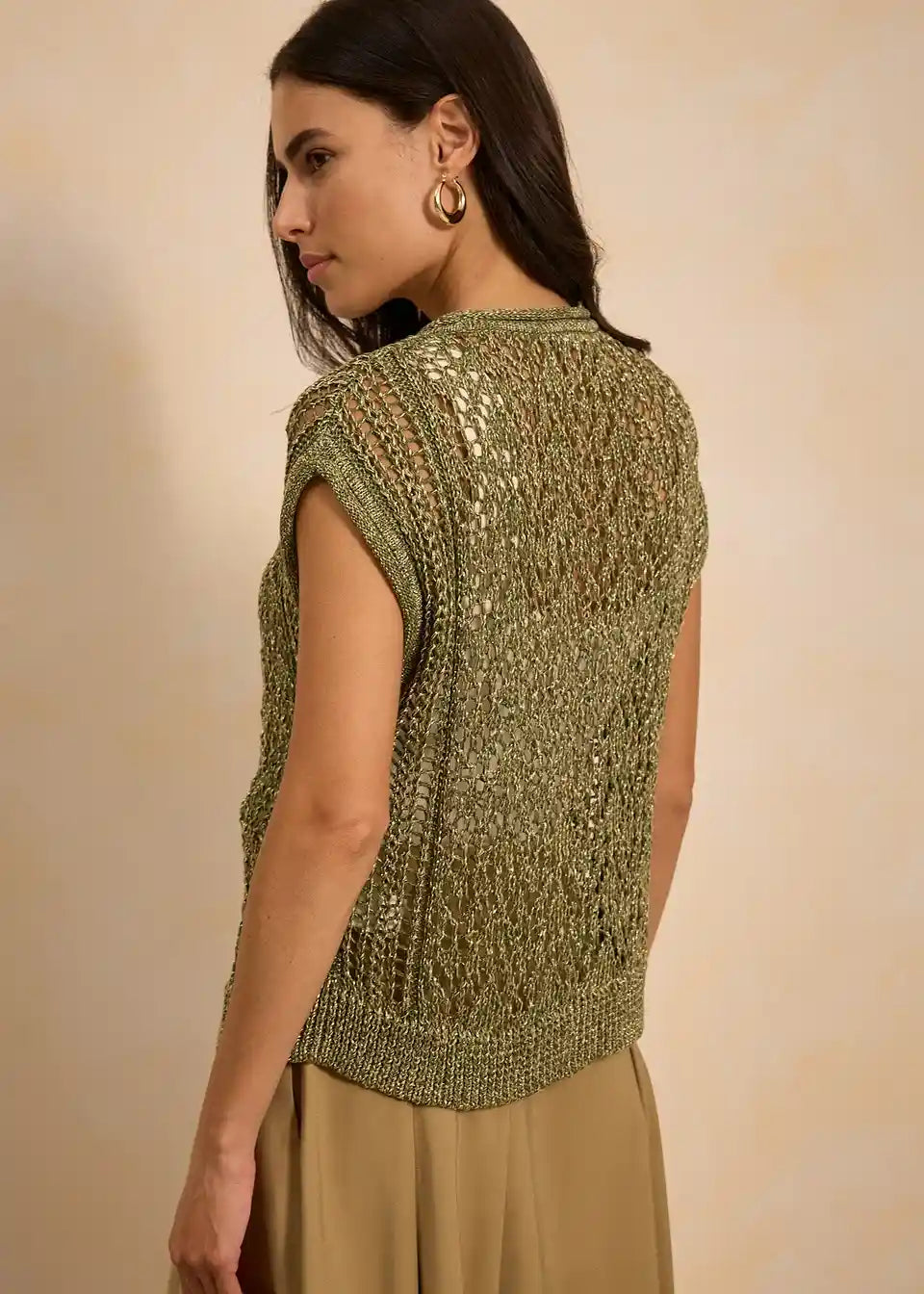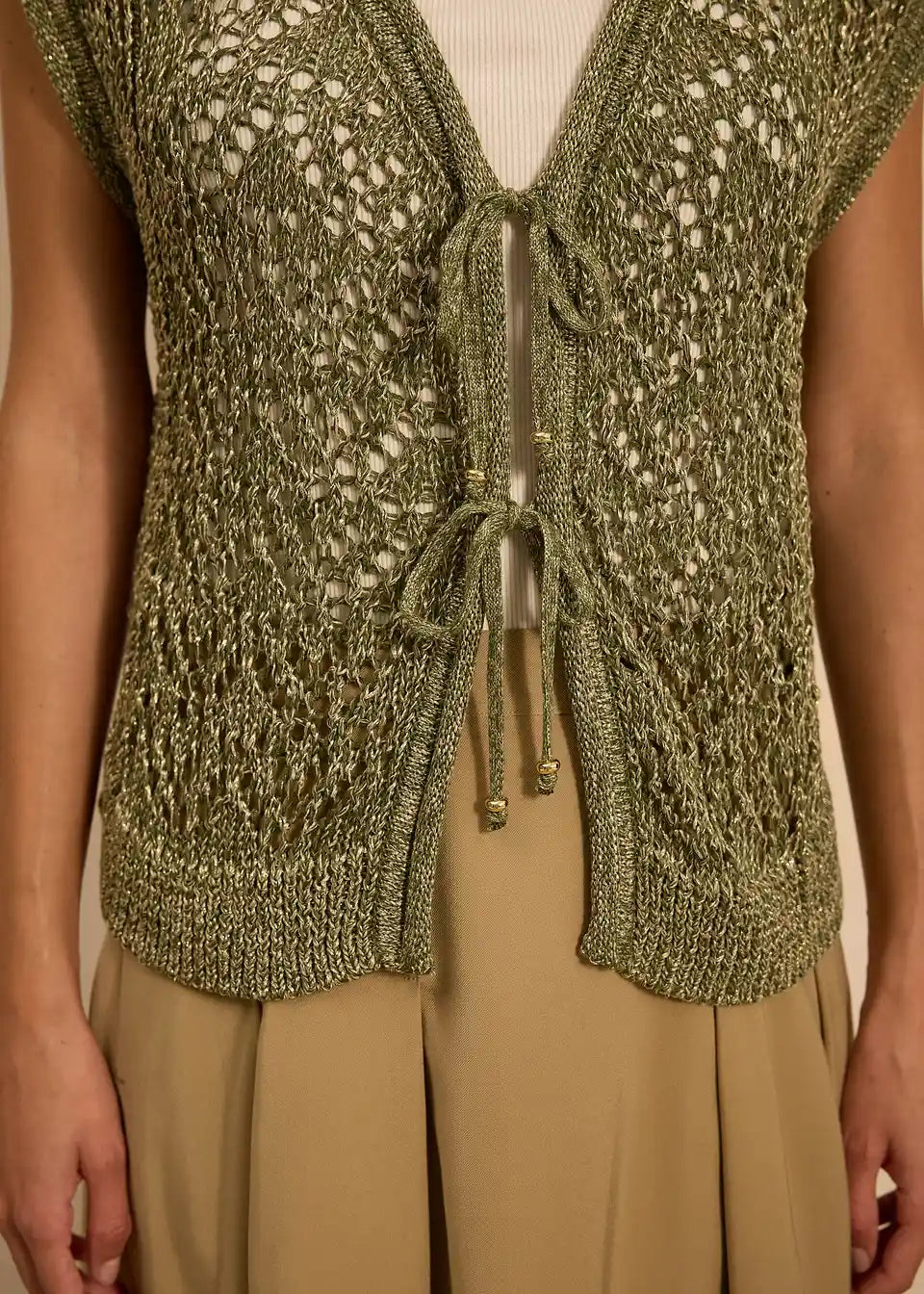 Pleten telovnik z ažurjem in viskozo