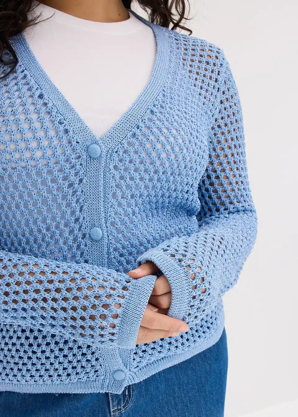 Prosojna pletena jopica iz visokokakovostnega ajourja