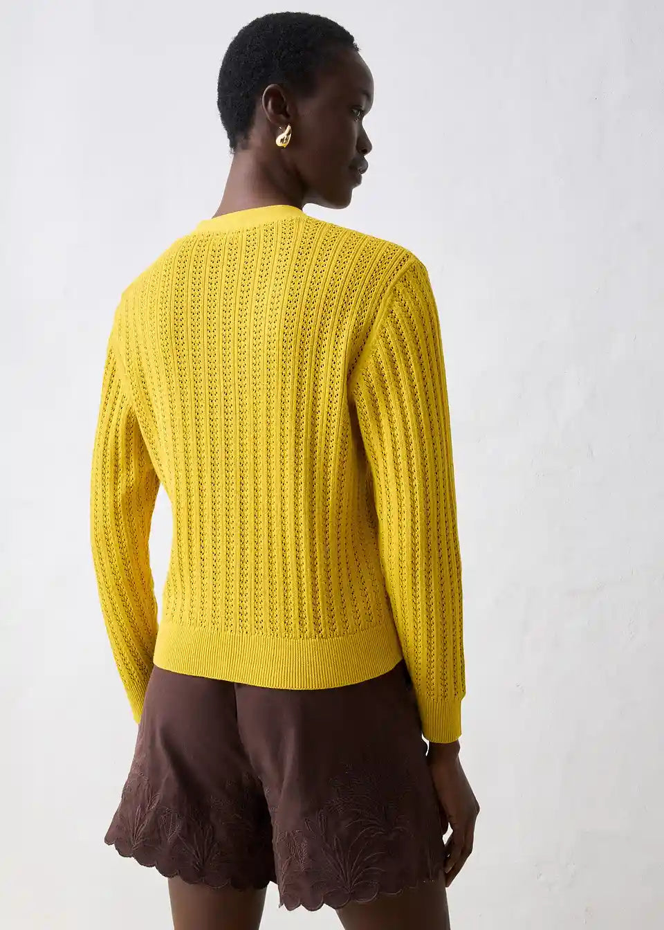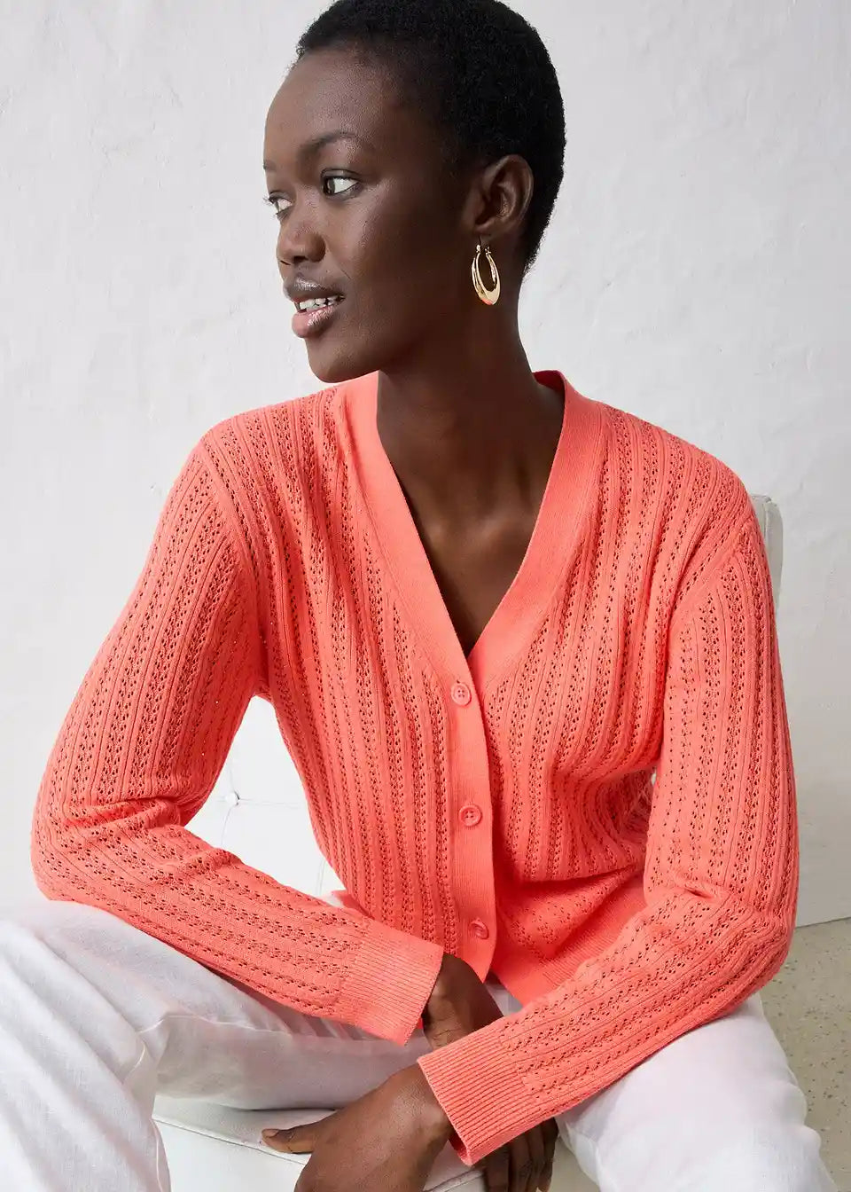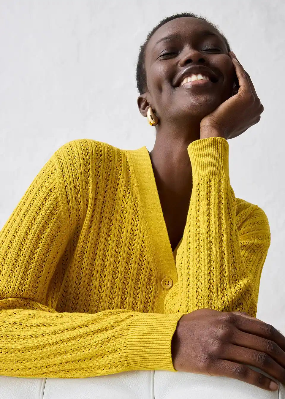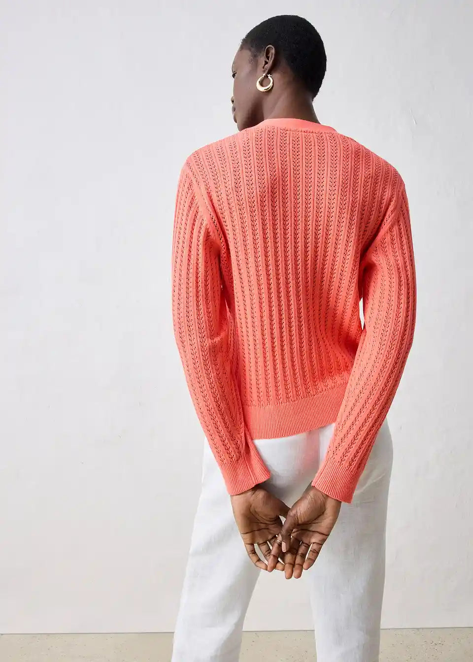 Idealna za pomlad je ta Ajour pletena jopica z deležem lana