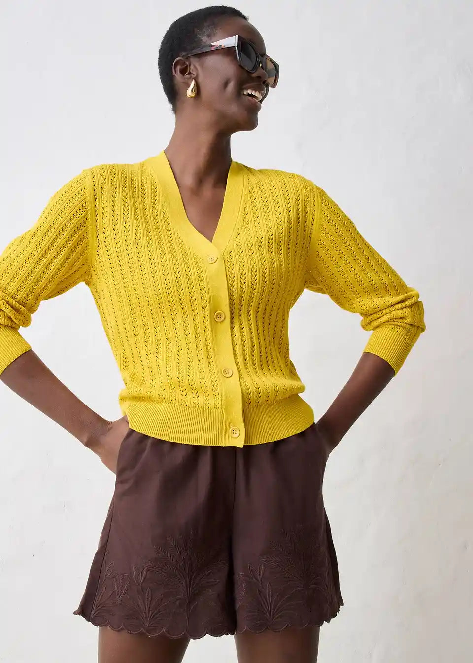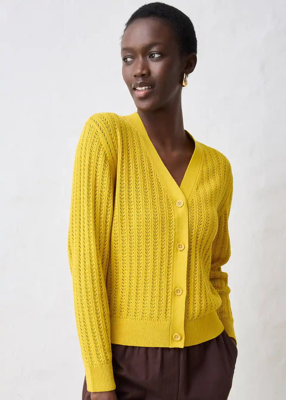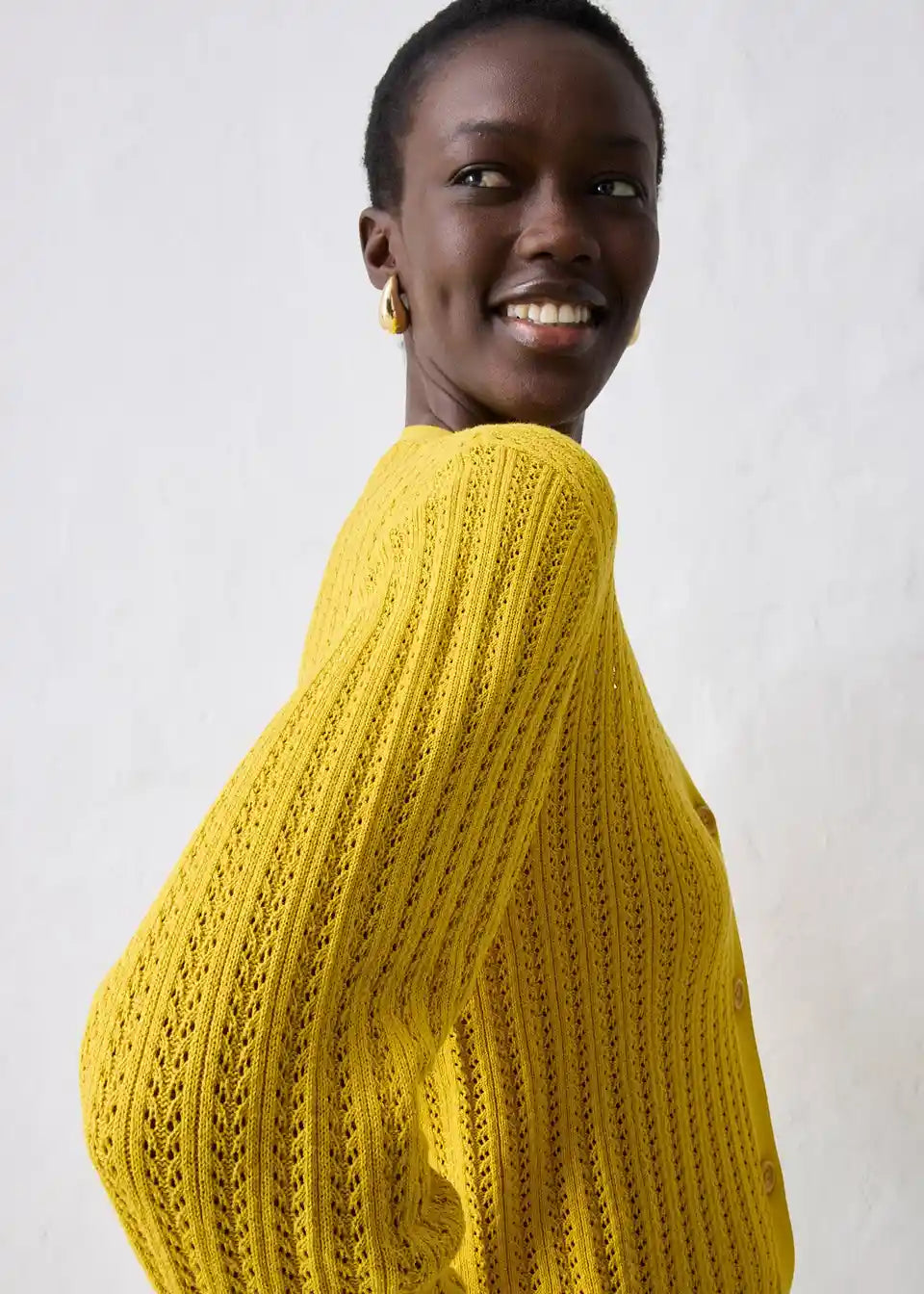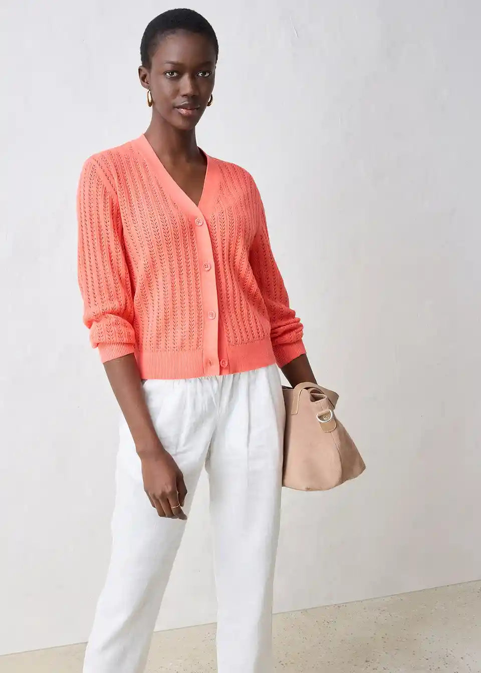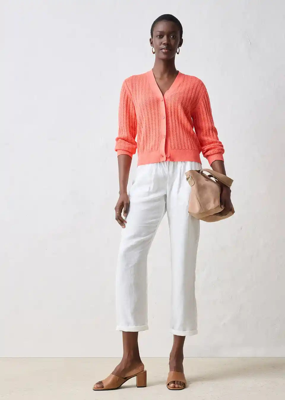 Idealna za pomlad je ta Ajour pletena jopica z deležem lana