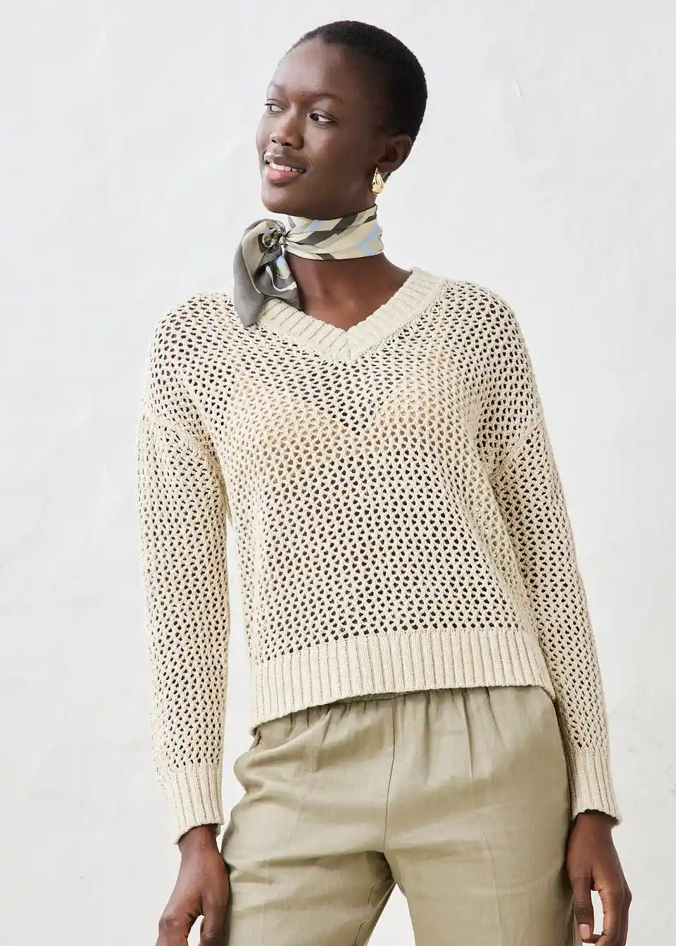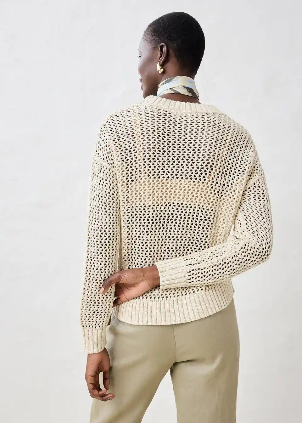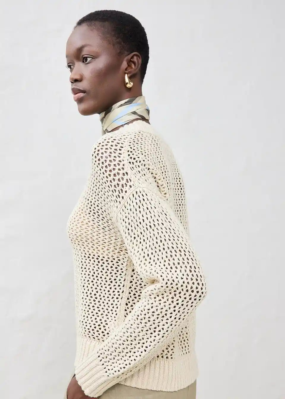Pulover v čudovitem ajour vzorcu in lahki mešanici lana