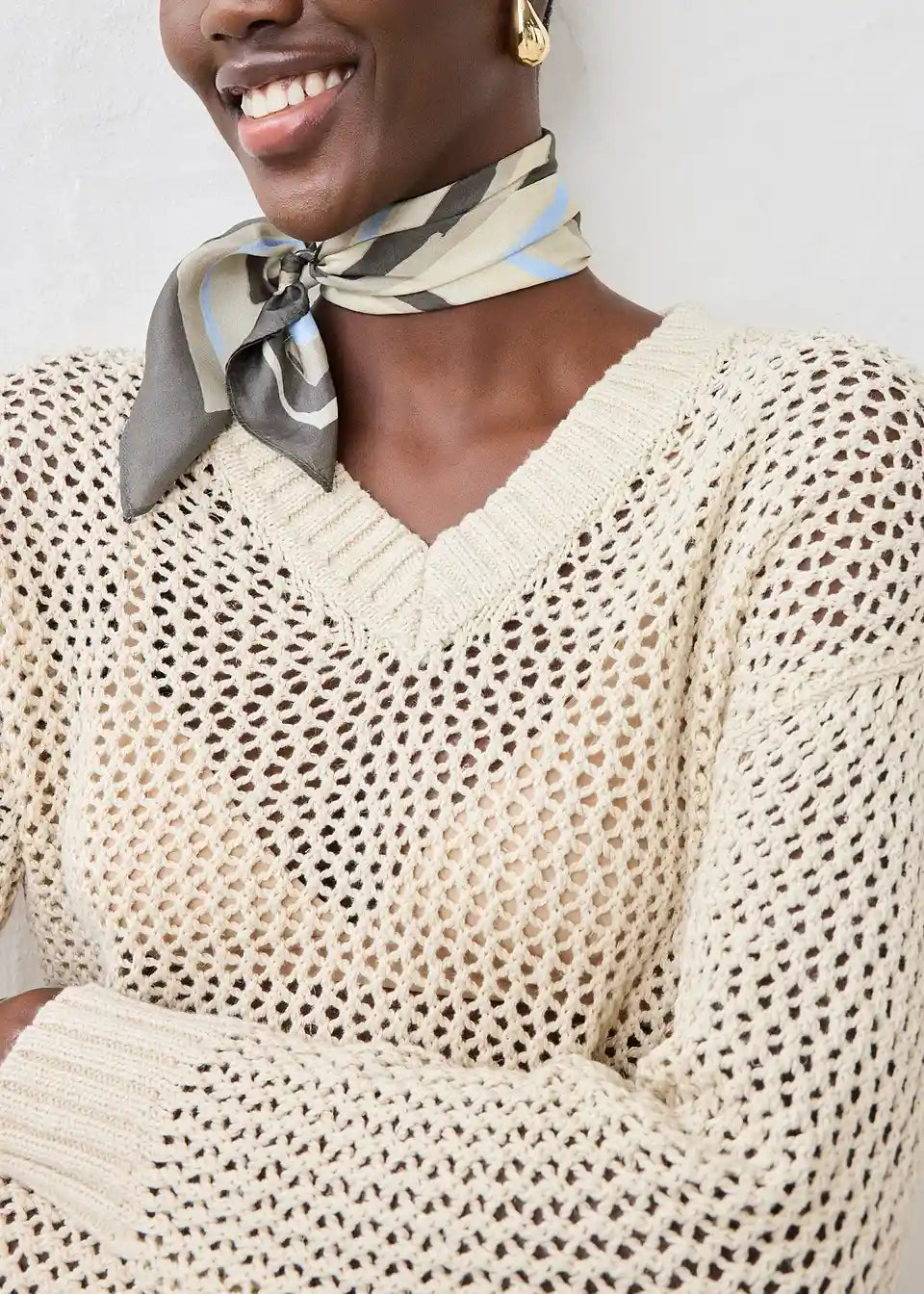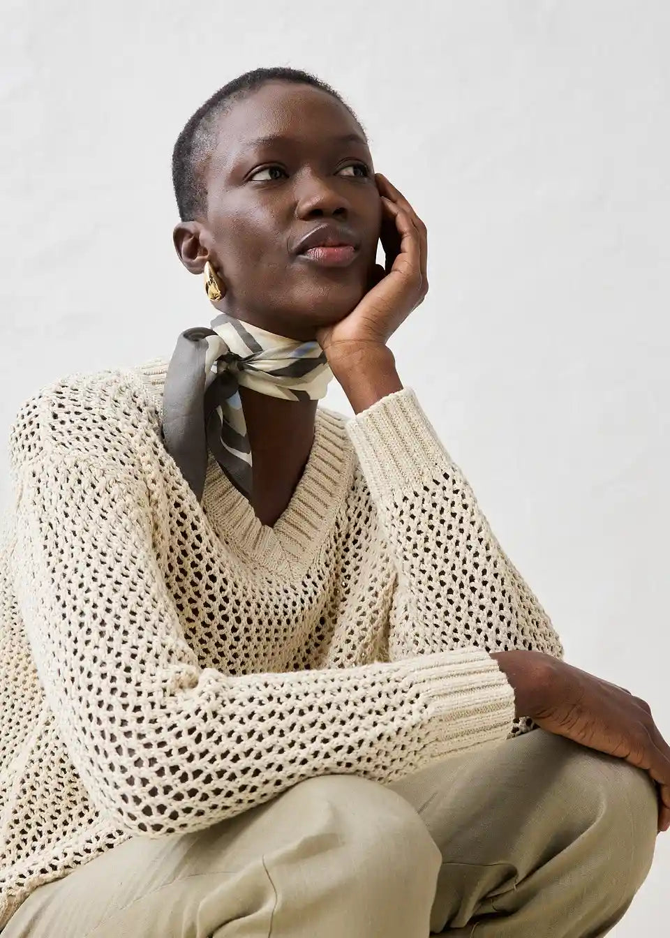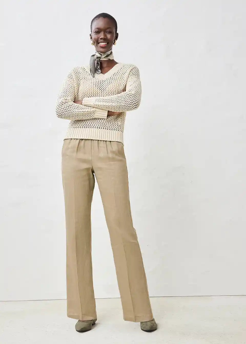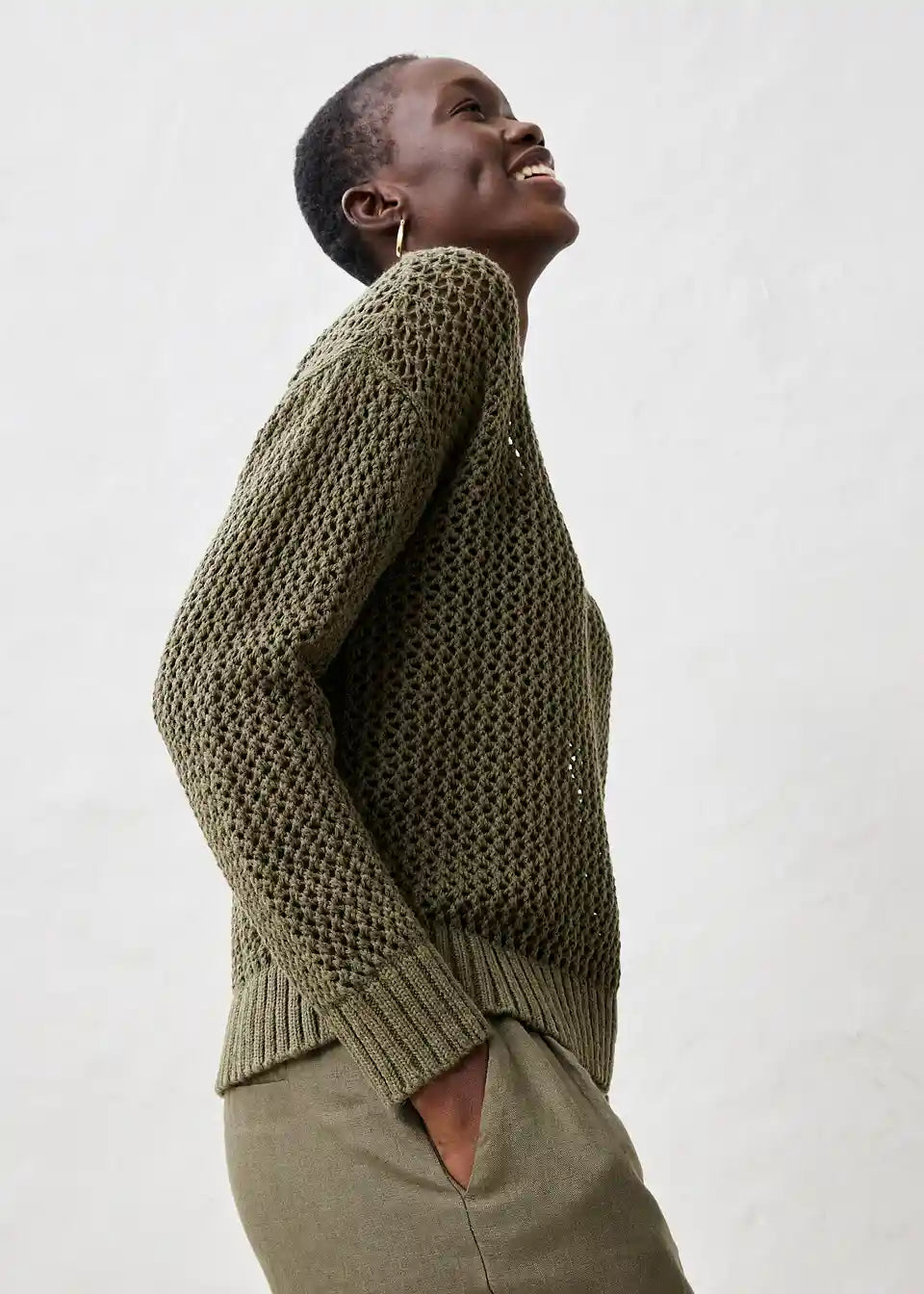 Pulover v čudovitem ajour vzorcu in lahki mešanici lana