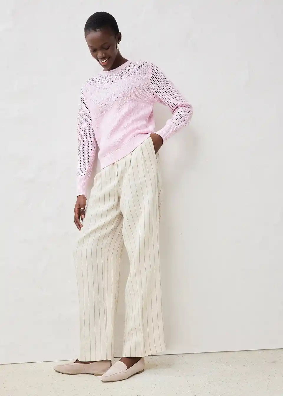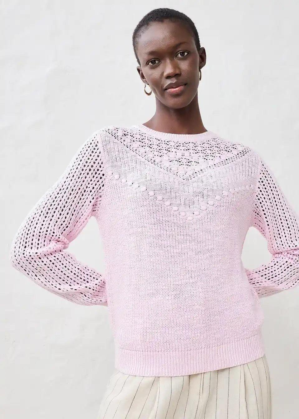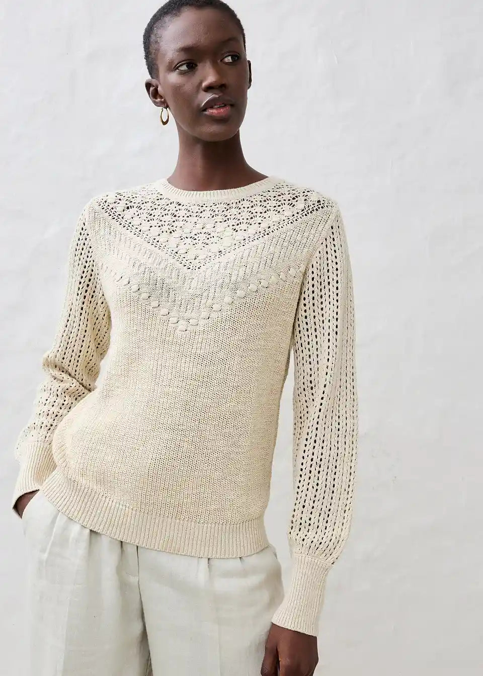 Pulover iz ažura z deležem lanu