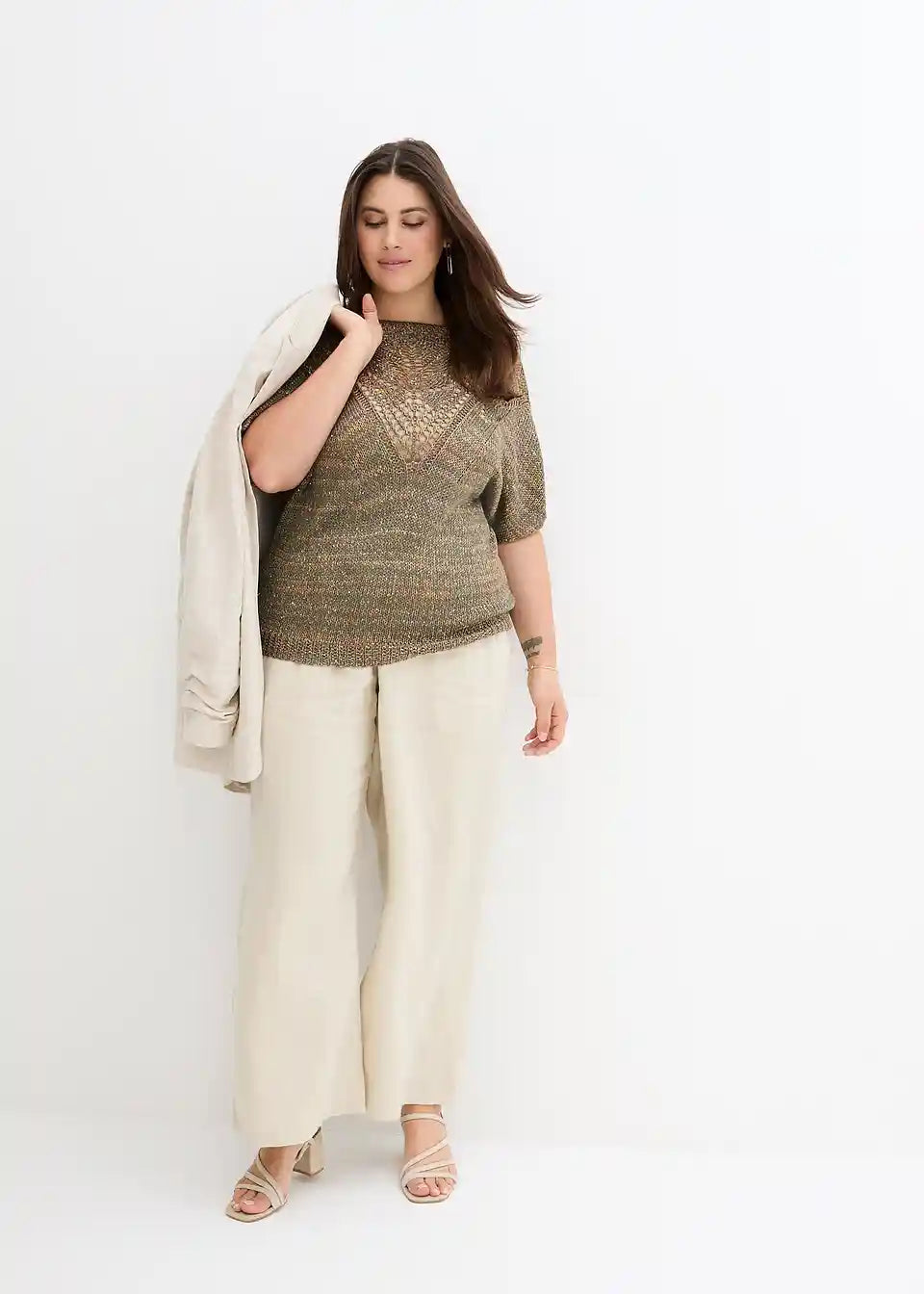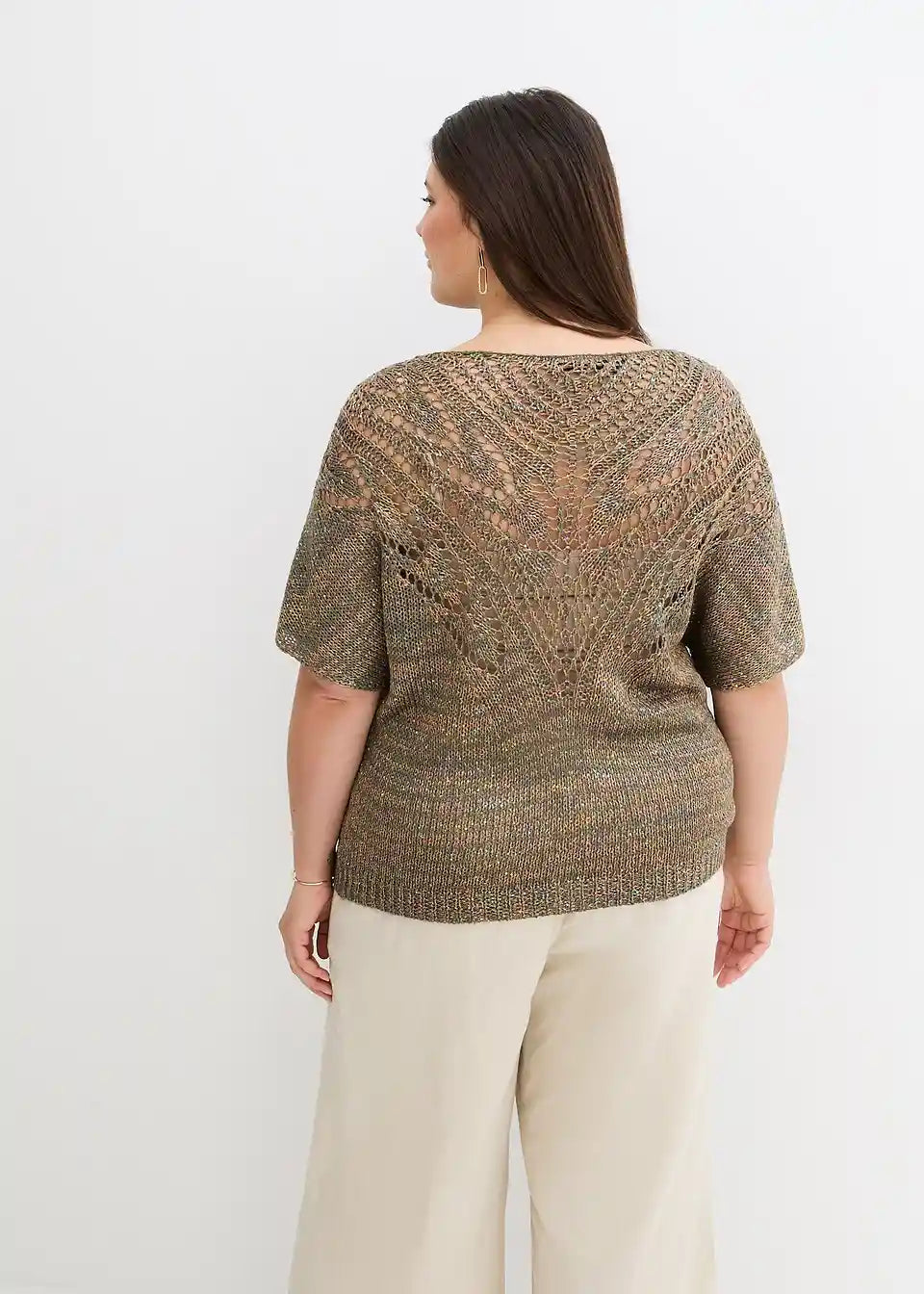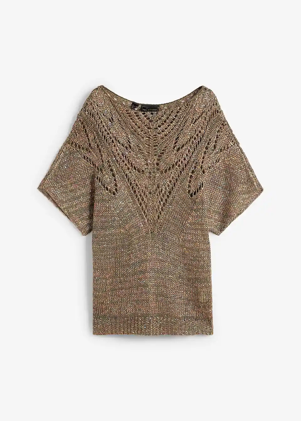 poletni pulover s kratkimi rokavi; okrašen z elegantnimi bleščicami