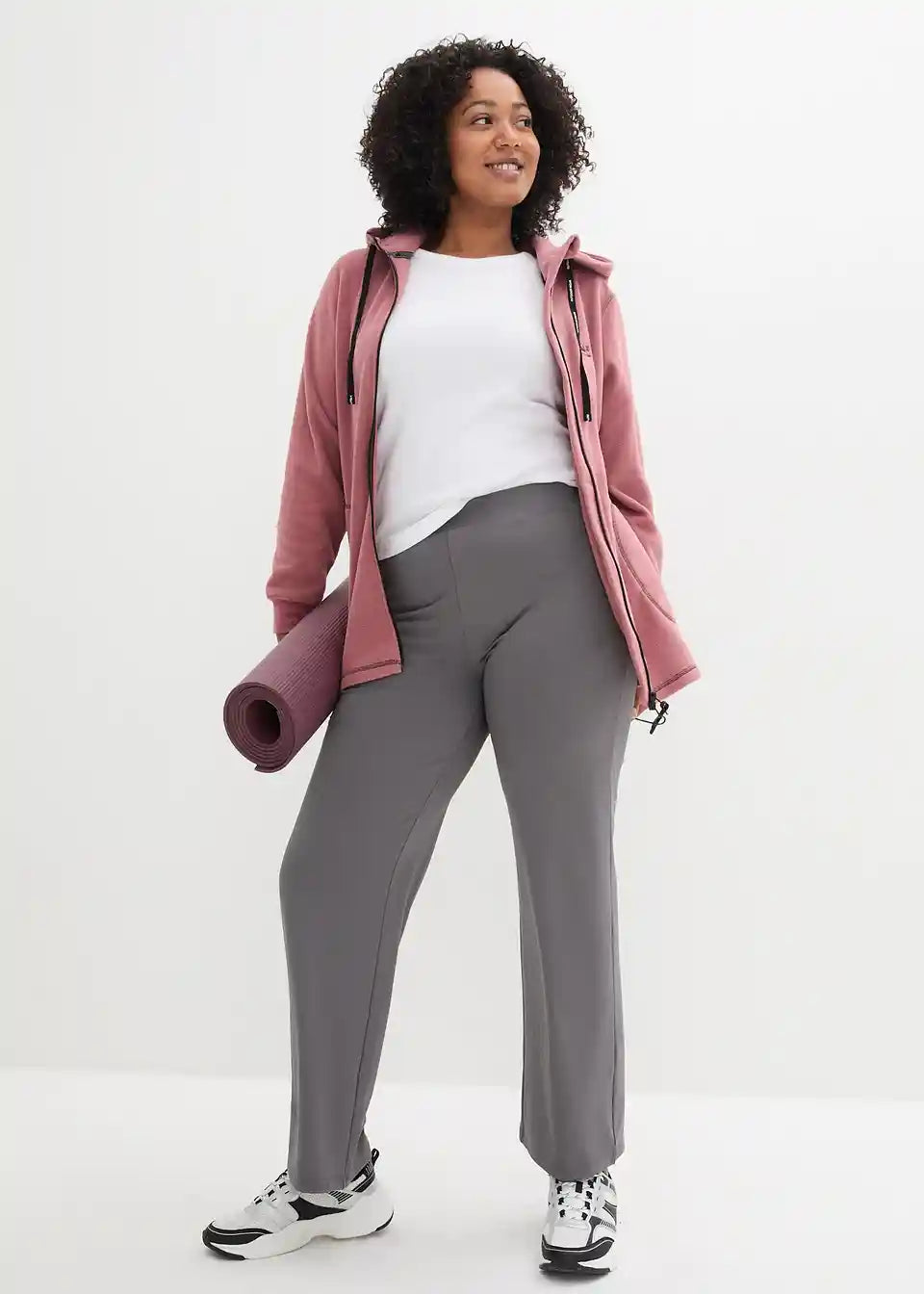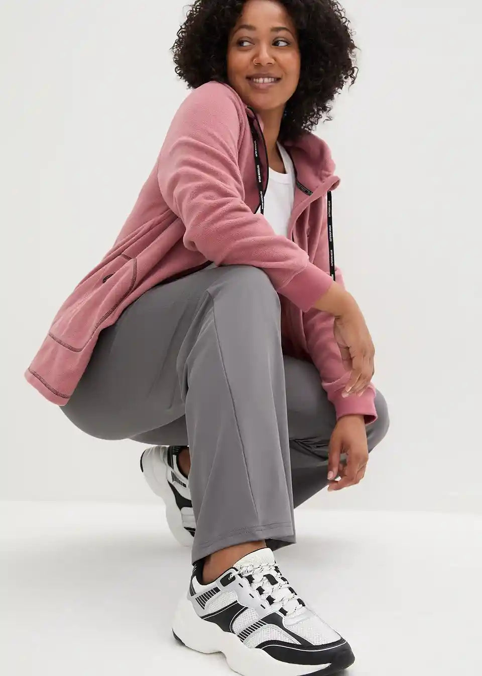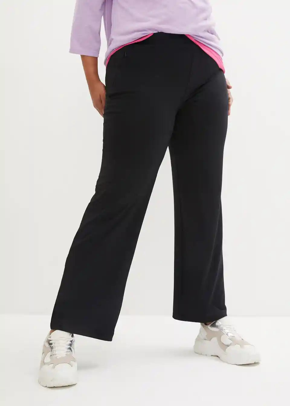 Primerne za vsak dan, hitro sušeče športne hlače z ravnim krojem iz raztegljivega materiala z zaprtimi žepi, Straight