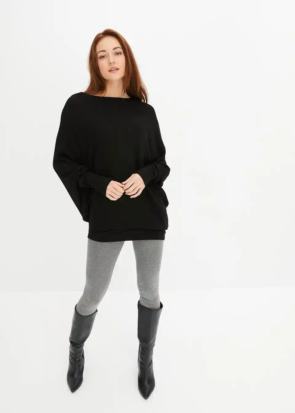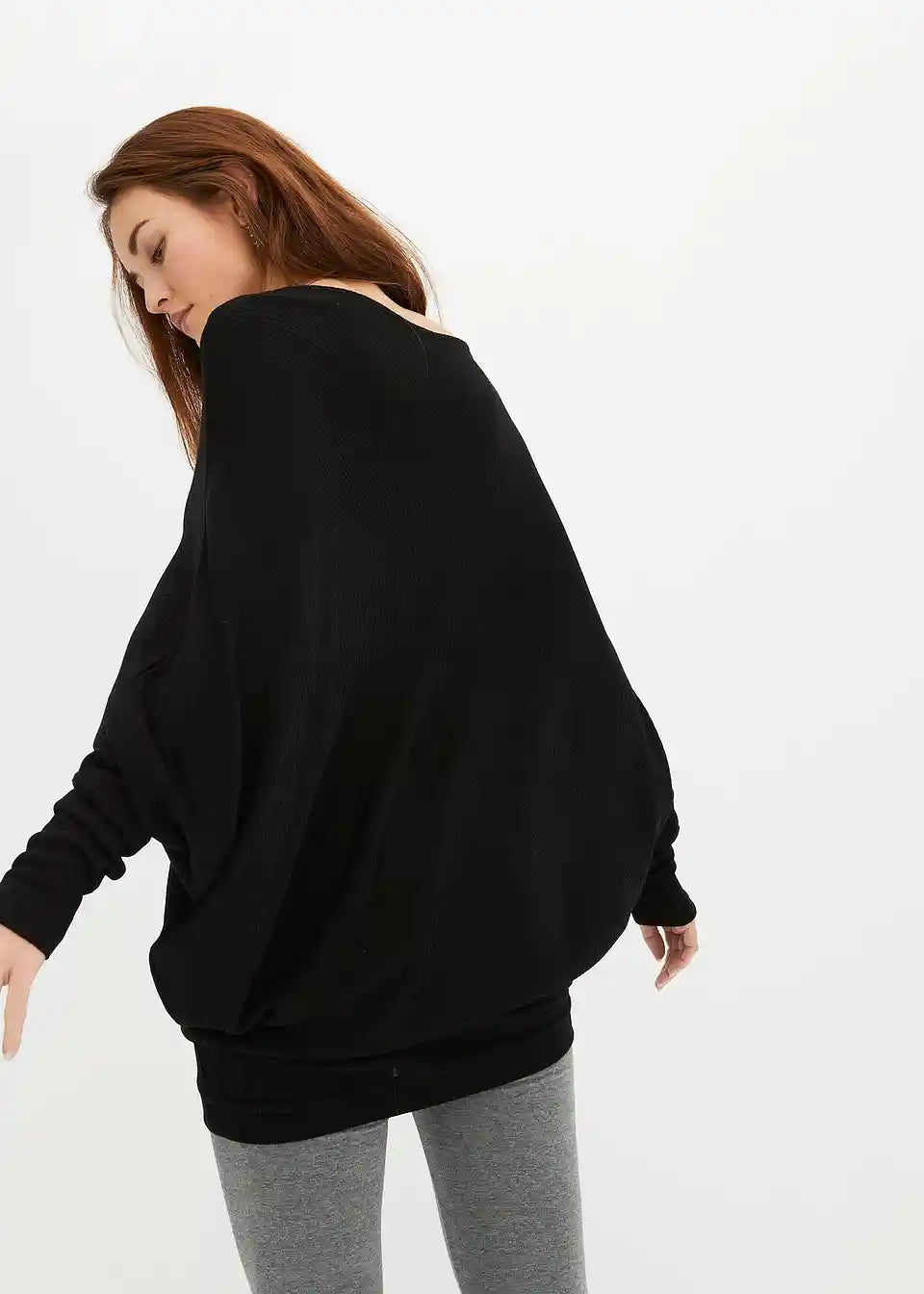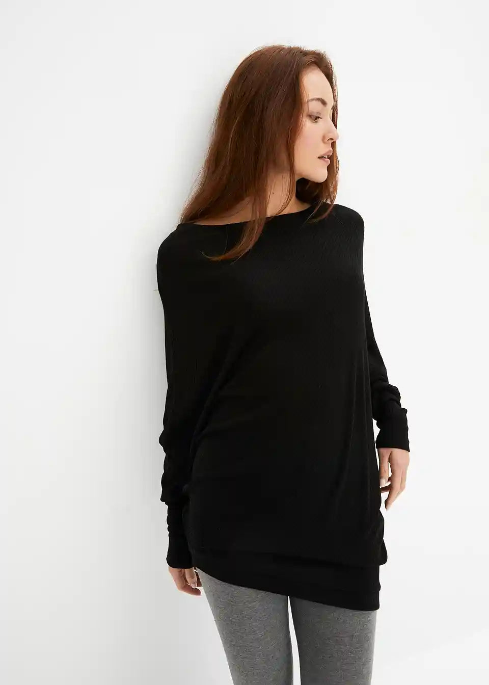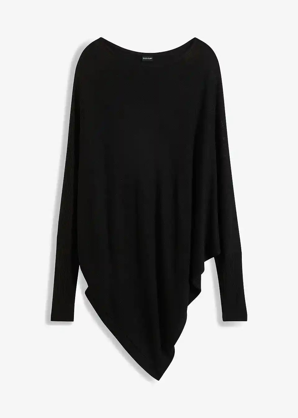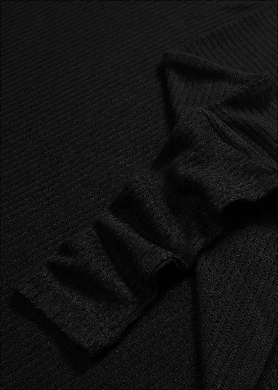 Lep pulover v videzu rebrastega pletiva z asimetričnim robom
