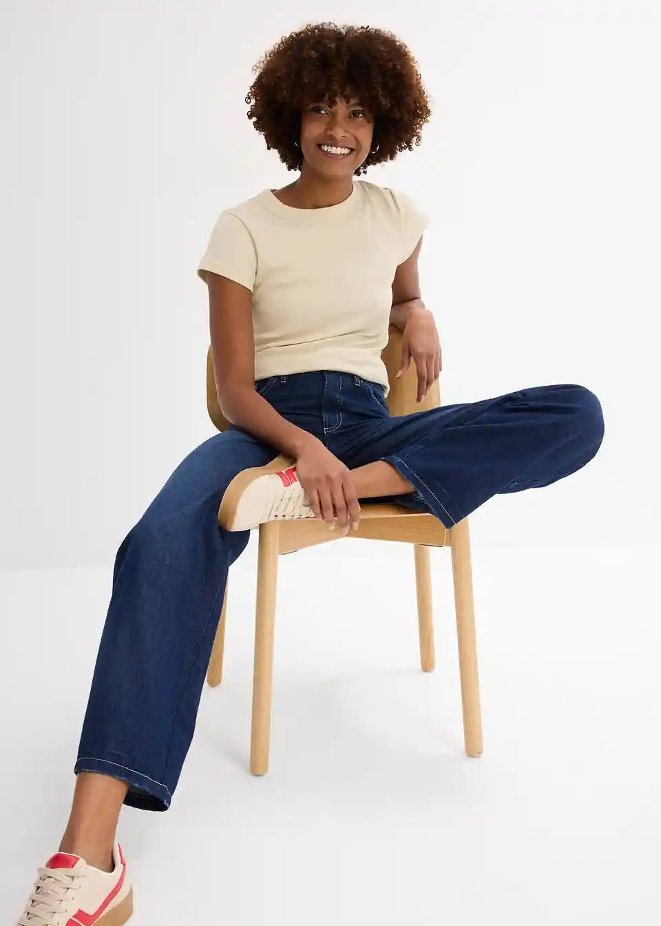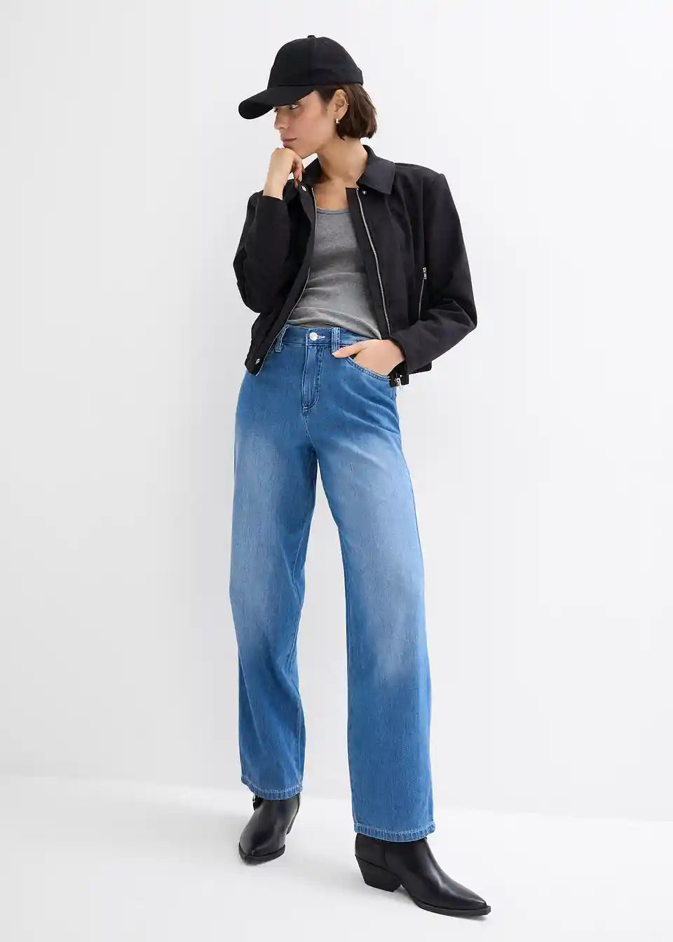 Baggy kavbojke s srednje visokim pasom iz lahkega mehkega materiala
