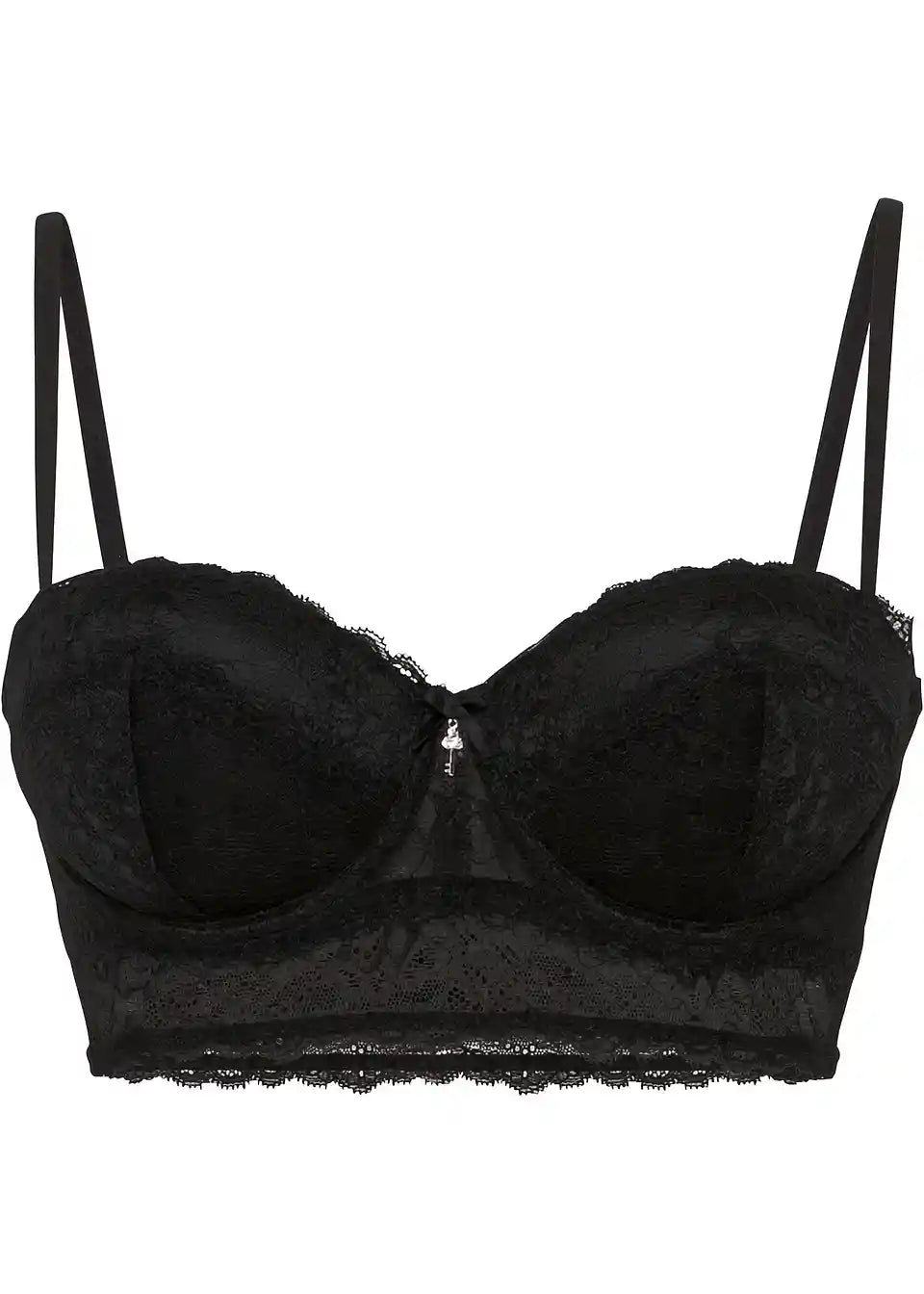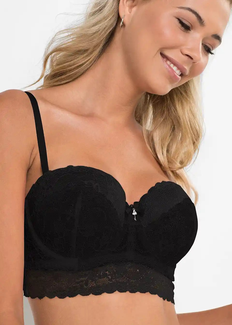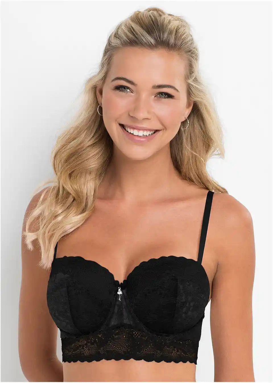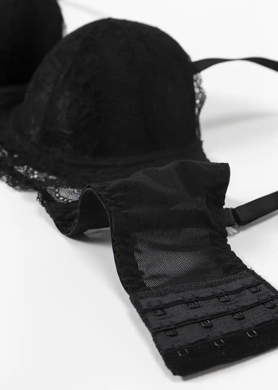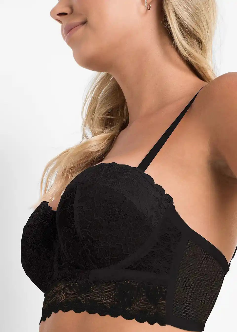 Balconette nedrček v trendovskem dvobarvnem videzu je vznemirljiva privlačnost modne zgornje garderobe. Zaradi uporabe modne čipke nedrček pridobi svojo dinamično estetiko. Večplastni trak pod prsmi tesno objame telo in v kombinaciji z globokim izrezom ustvarja ženstveno silhueto. Njegove brezšivne, podložene košarice z oporo oblikujejo čudovit dekolte. Naramnici in zapenjalni trak s kavlji sta individualno nastavljiva in pri večjih velikostih košaric širša. Posebej trendovski: Dekorativna pentlja s sijočim obeskom prinaša edinstven poudarek.