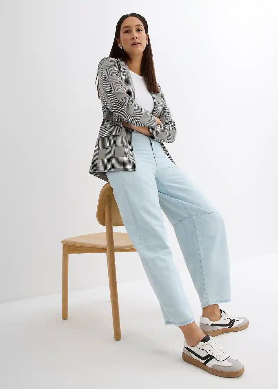 Balonaste kavbojke z visokim udobnim pasom iz izjemno mehkega materiala v krajšem kroju